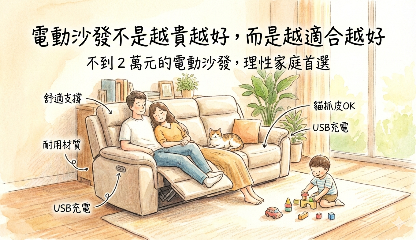 在合理結構與材質選擇下, 不到 2 萬元的高 CP 值電動沙發, 反而成為越來越多家庭的理性首選。