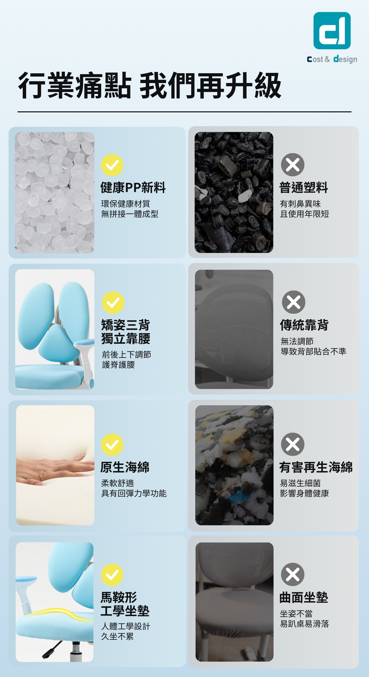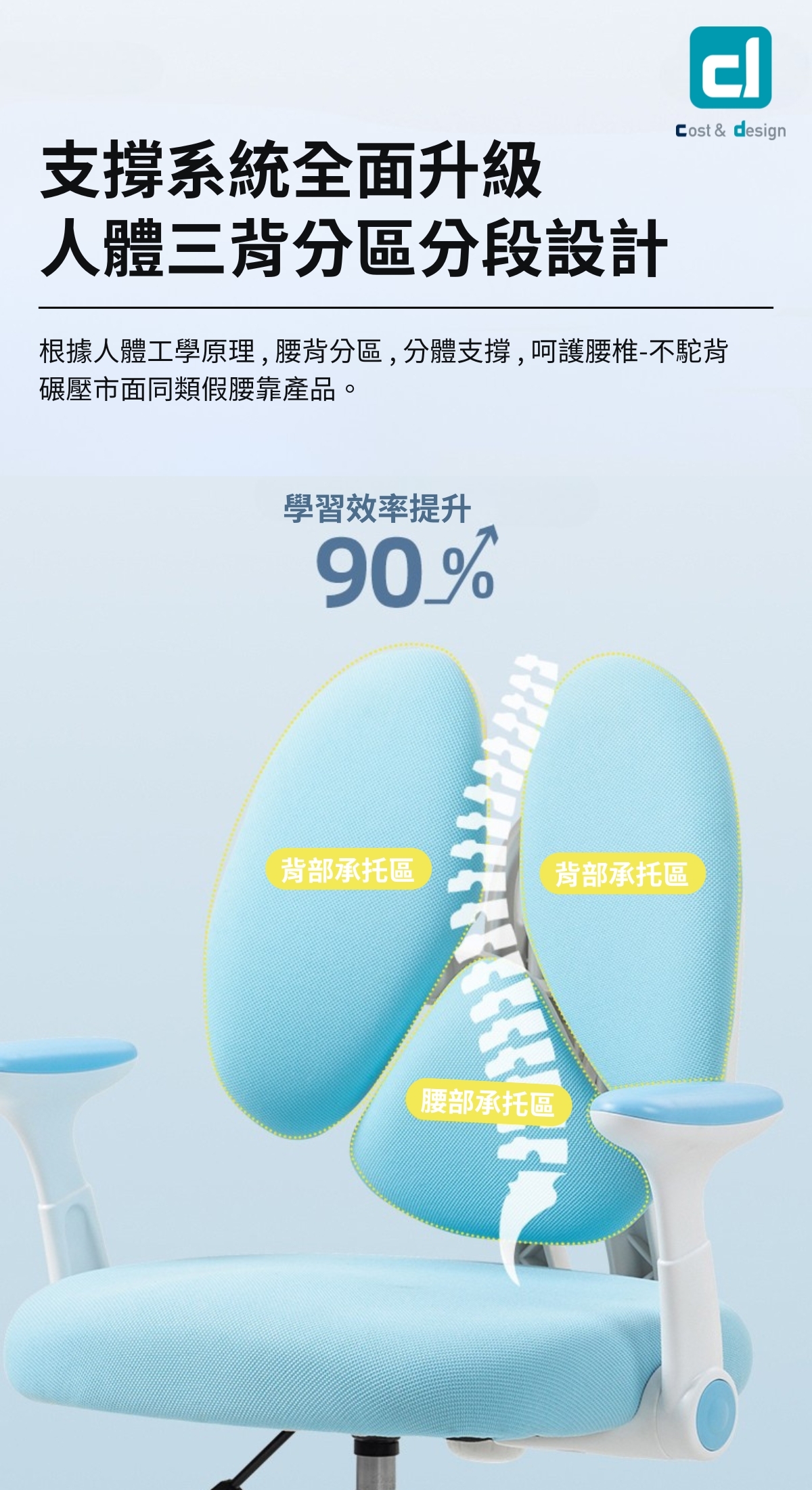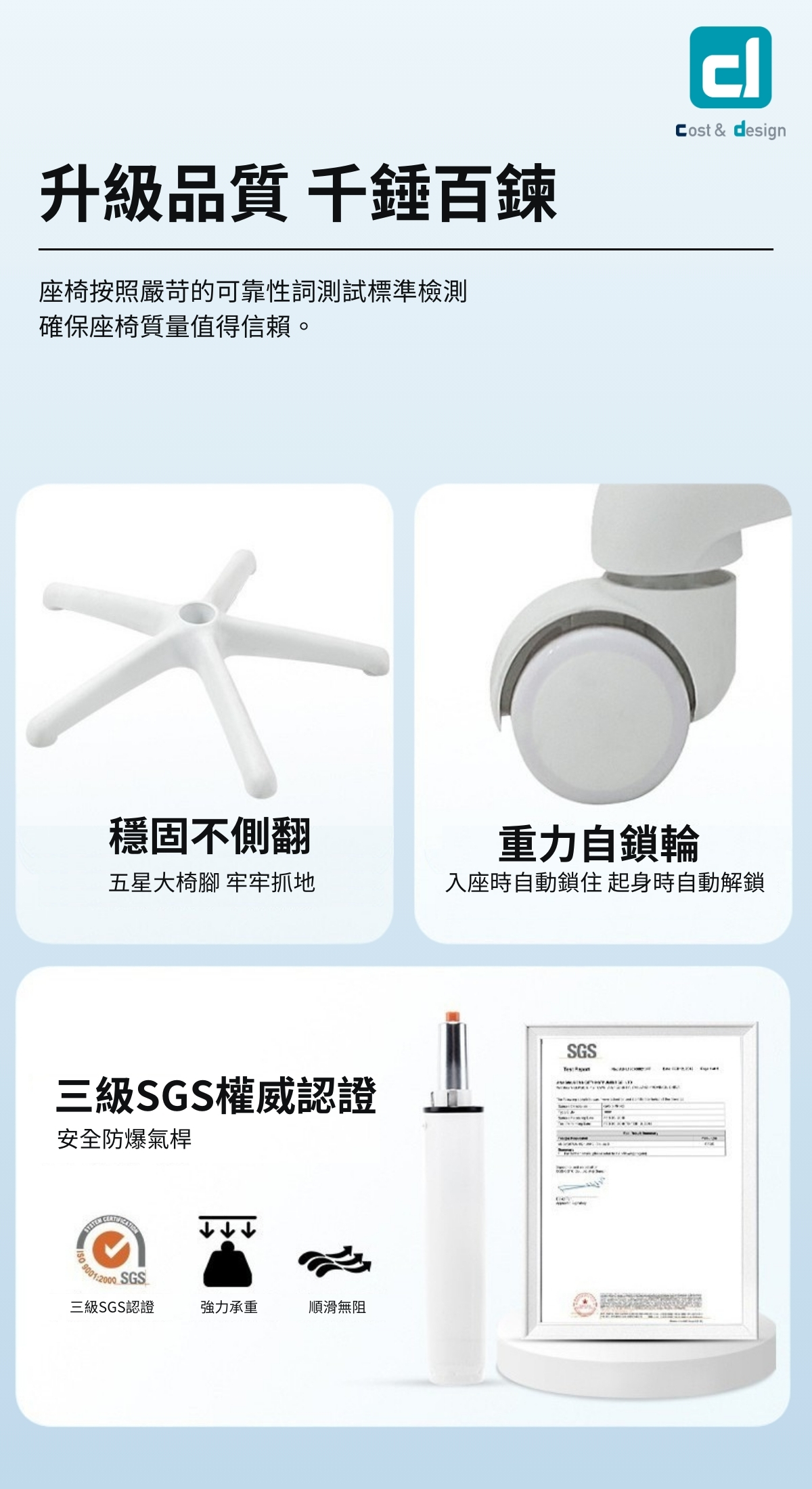 ※符合人體工學 ※SGS認證氣桿 ※高回彈原生棉 ※三背護脊+獨立腰靠