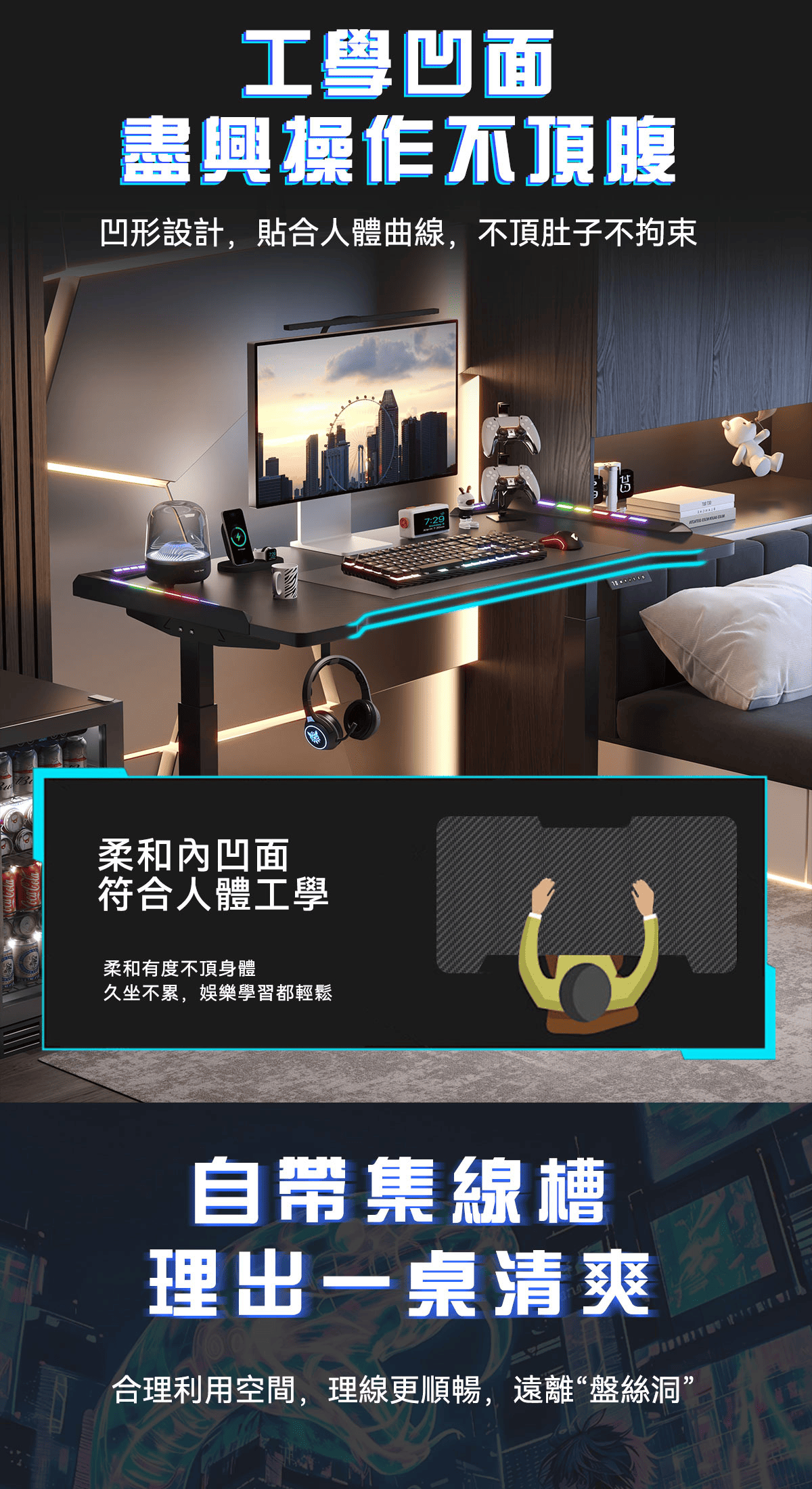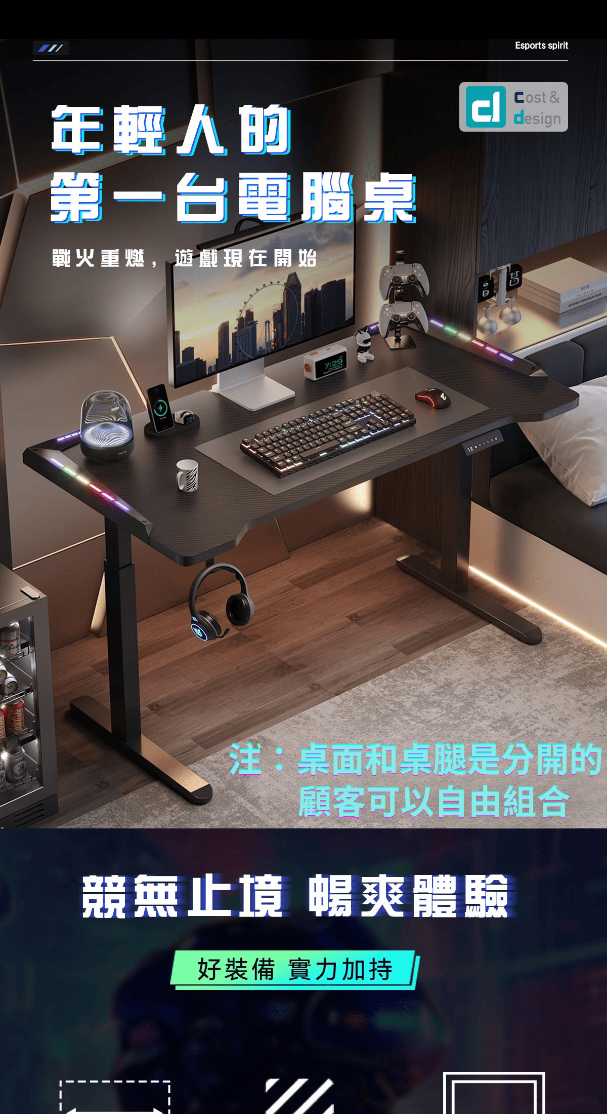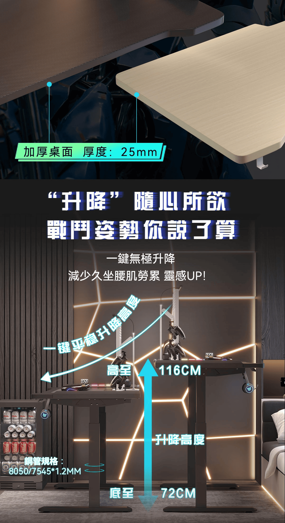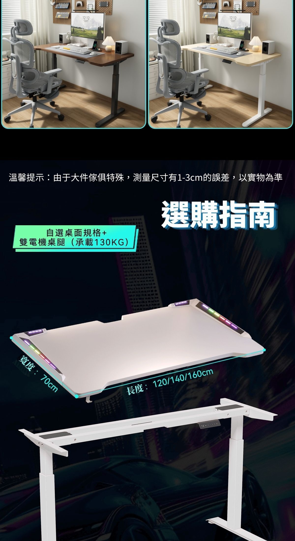 電動升降桌 單雙電機升降設計 碳纖維桌面兩色可選(升級附贈RGB氛圍燈) 木紋桌面兩色可選(無附贈RGB鎧甲燈)