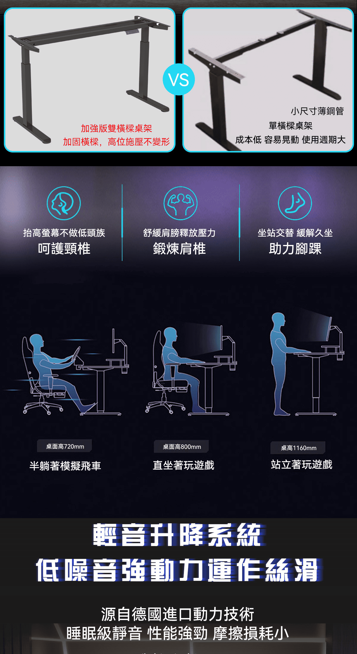 雙電機二節升降桌腿尺寸:※只有桌腳