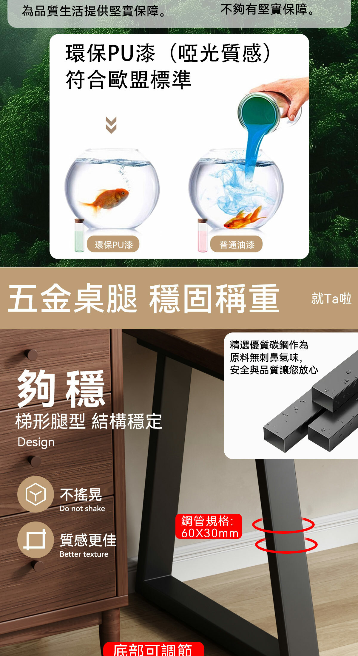 ※桌腳梯形加粗,穩固不搖晃,底部腳墊可適應不同地面調節