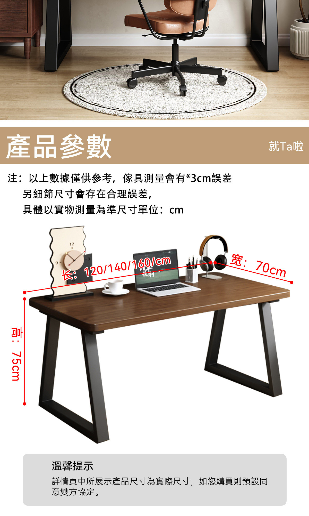 ※100%全實木桌面,桌面加厚達3CM