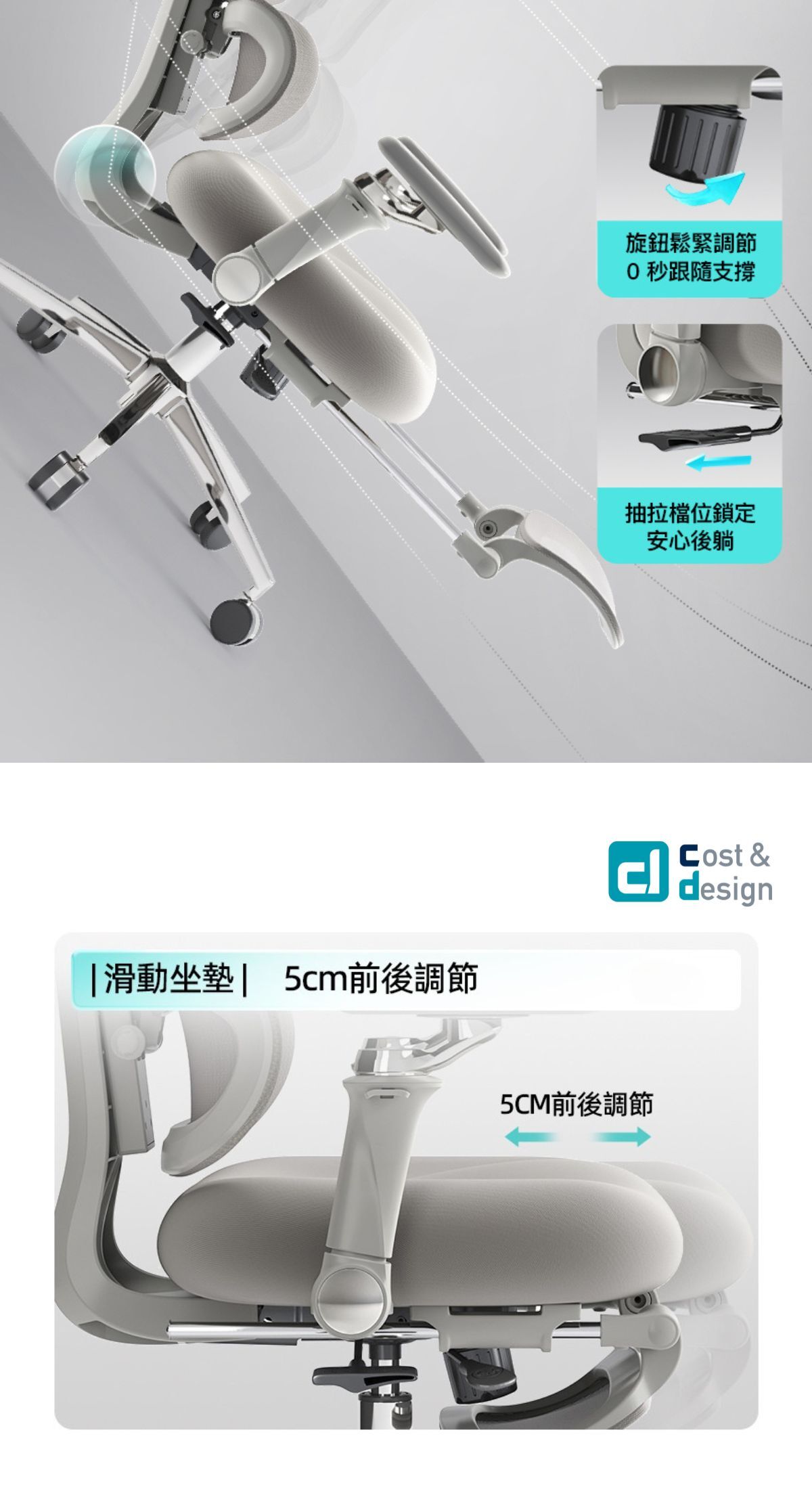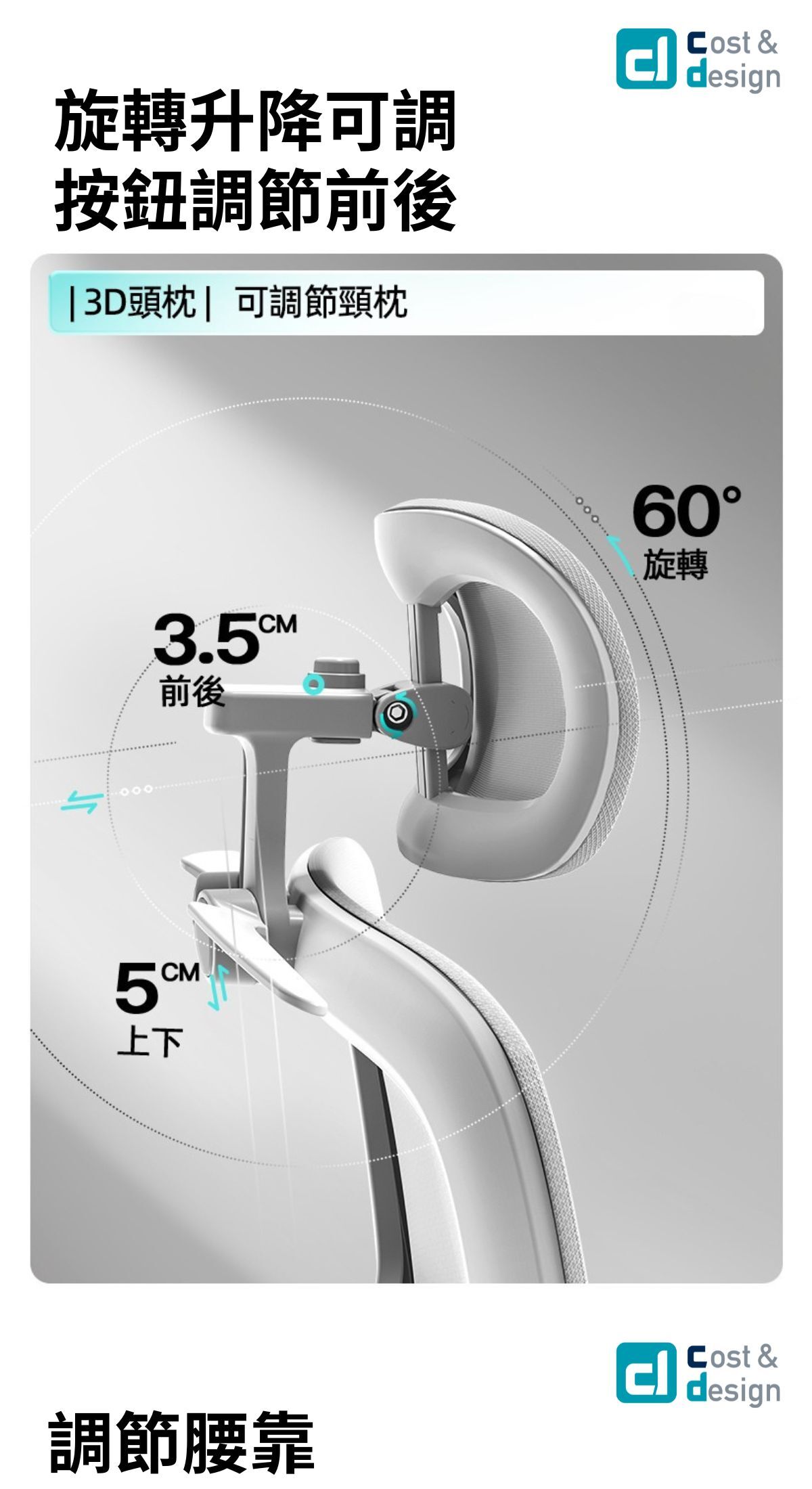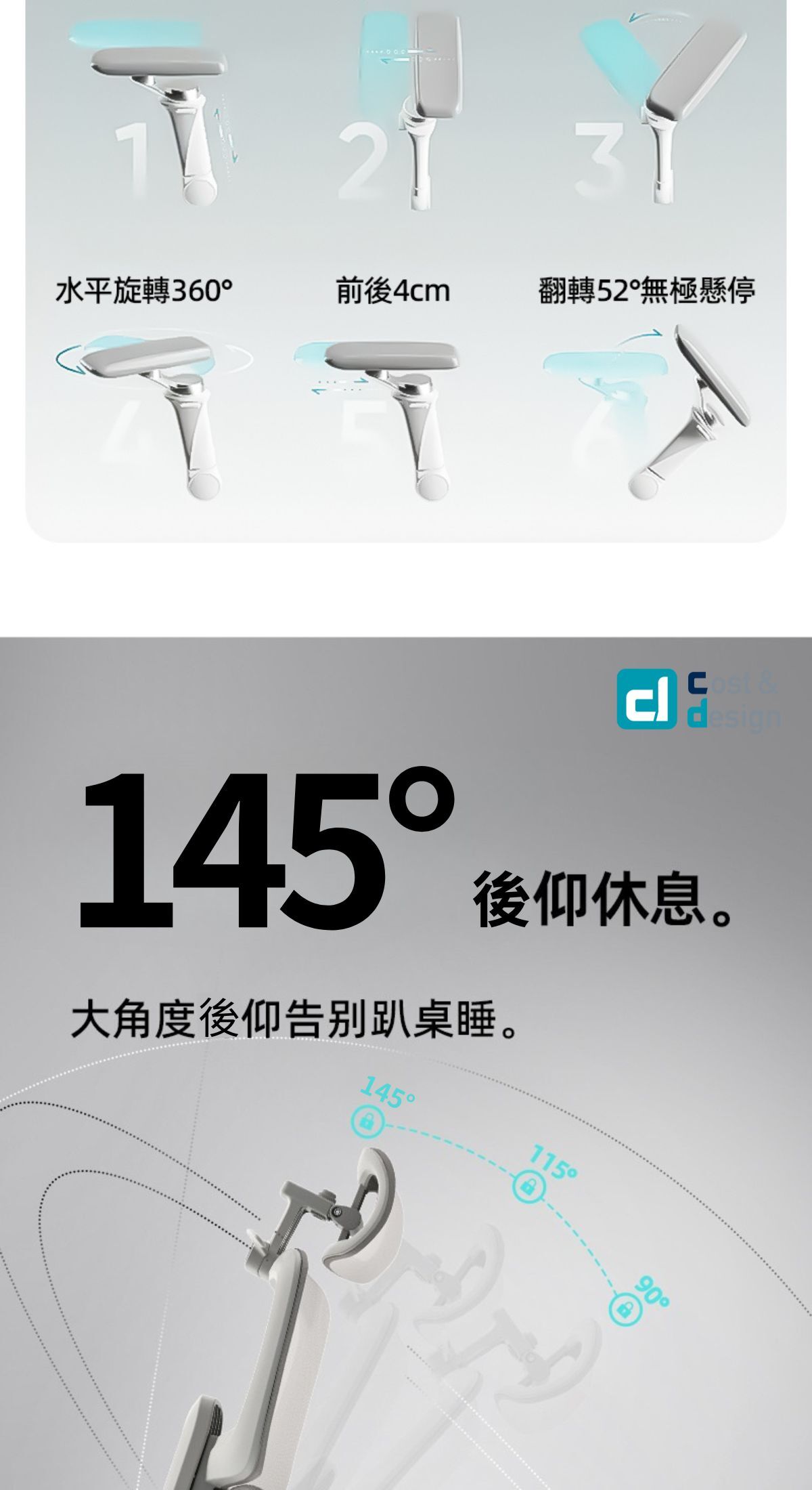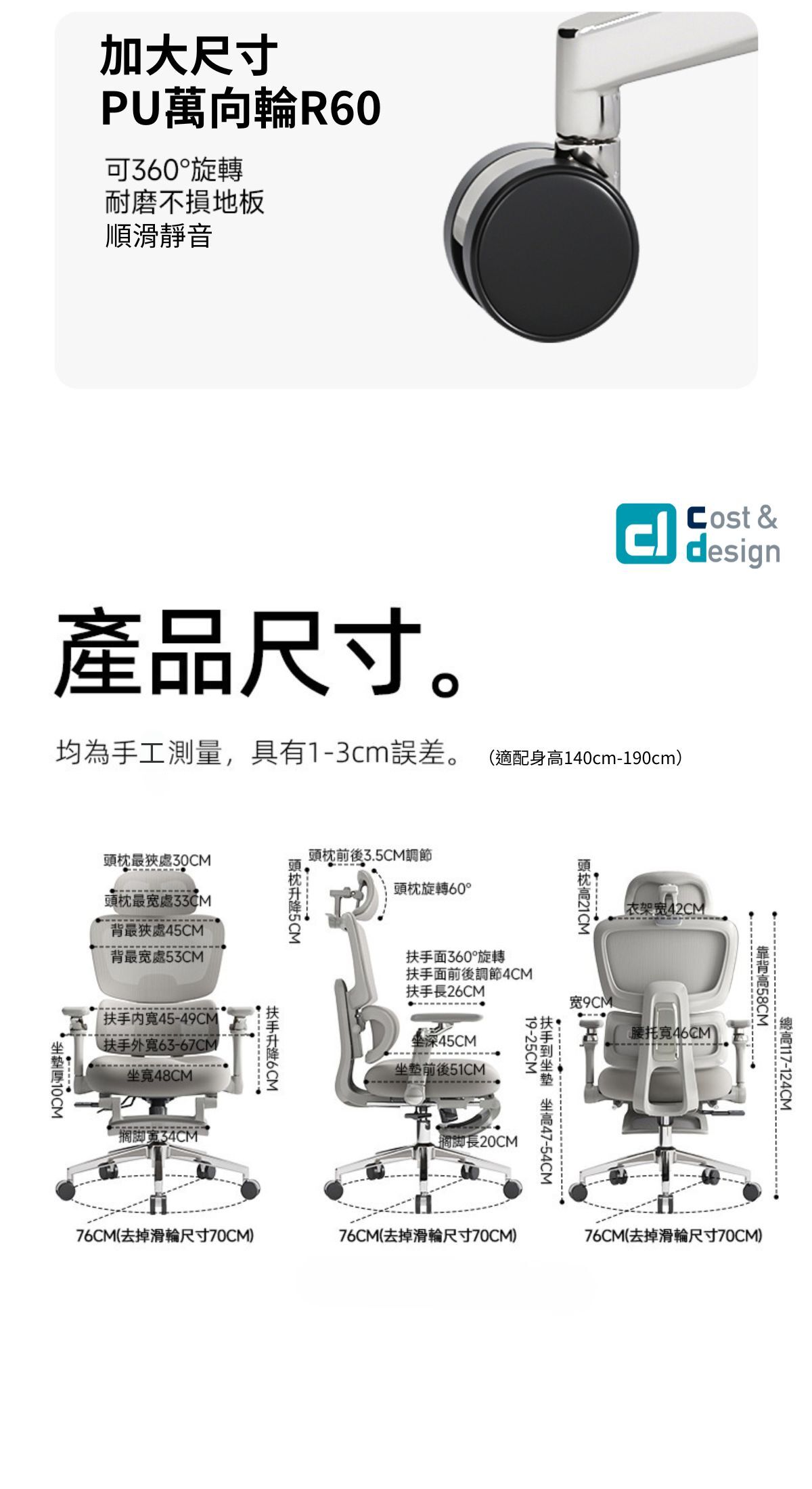 -3D調節頭枕+4D調節腰靠+6D可調扶手等部件,適應多種使用