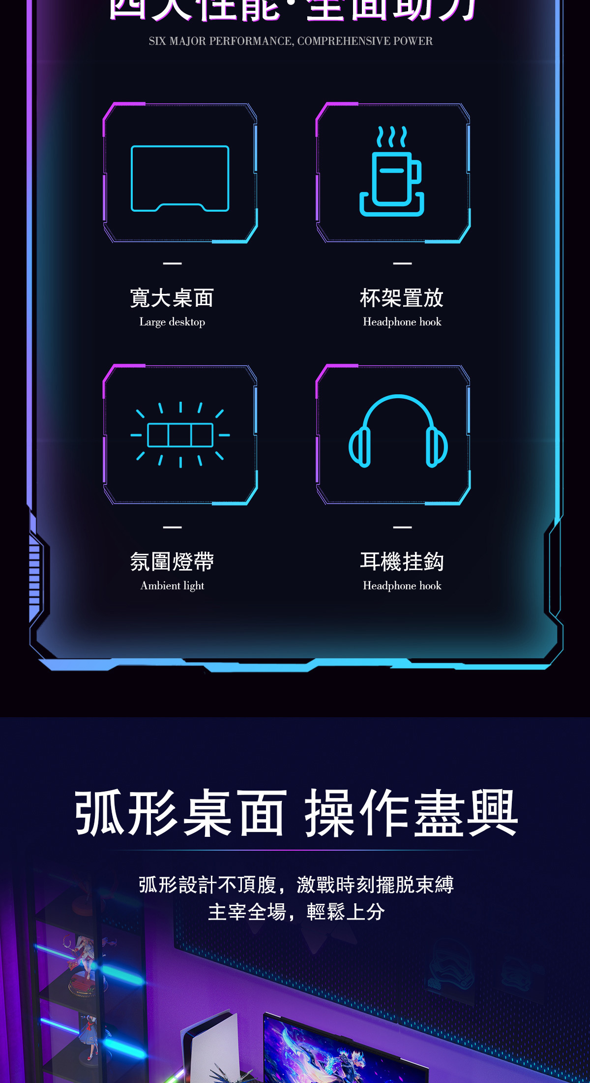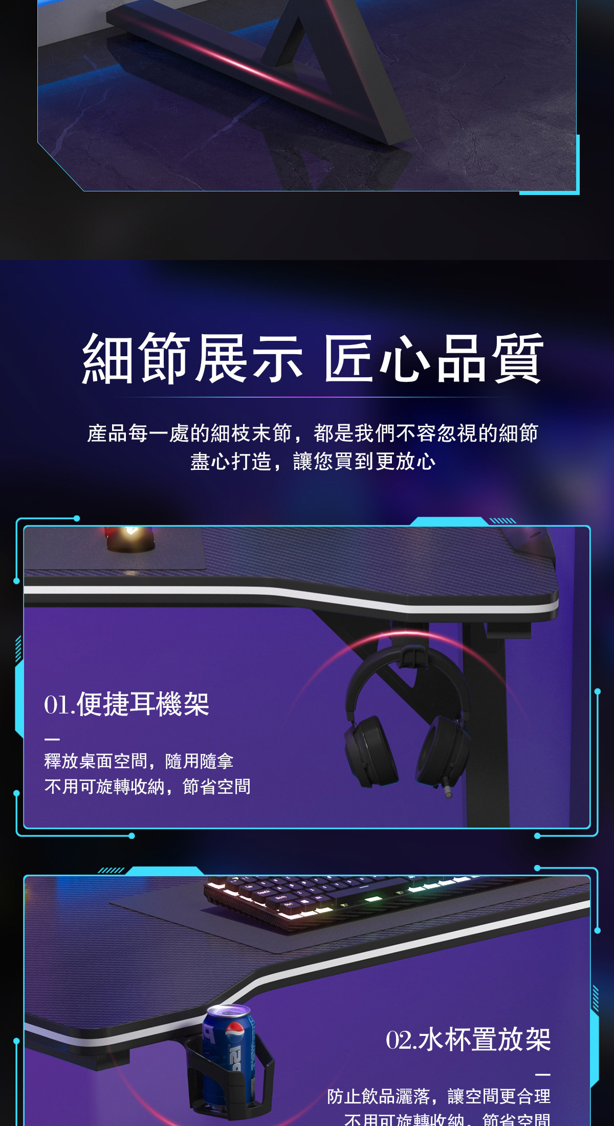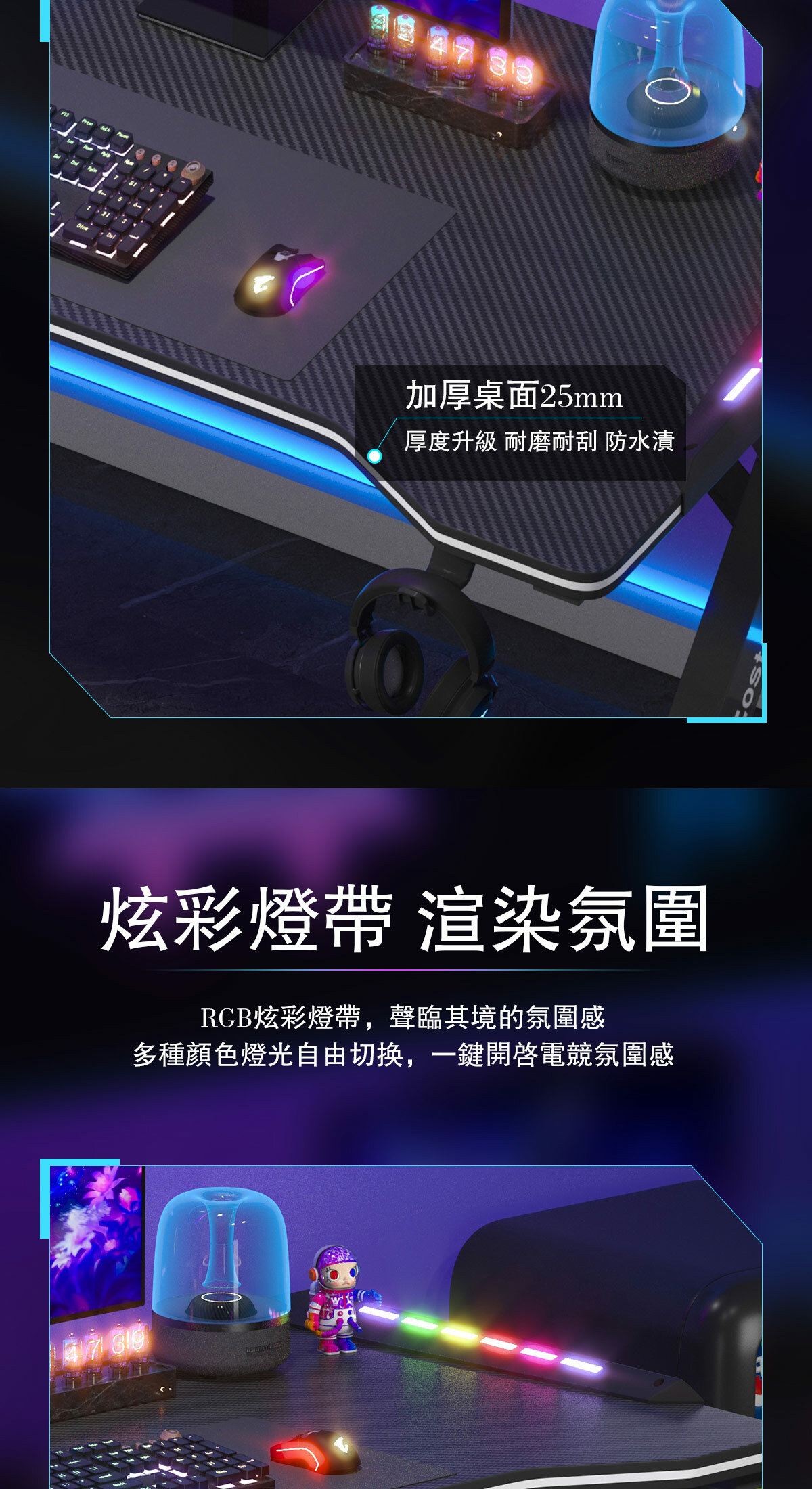 ※標配RGB鎧甲燈帶+杯架+耳機掛鈎,提升居家風格