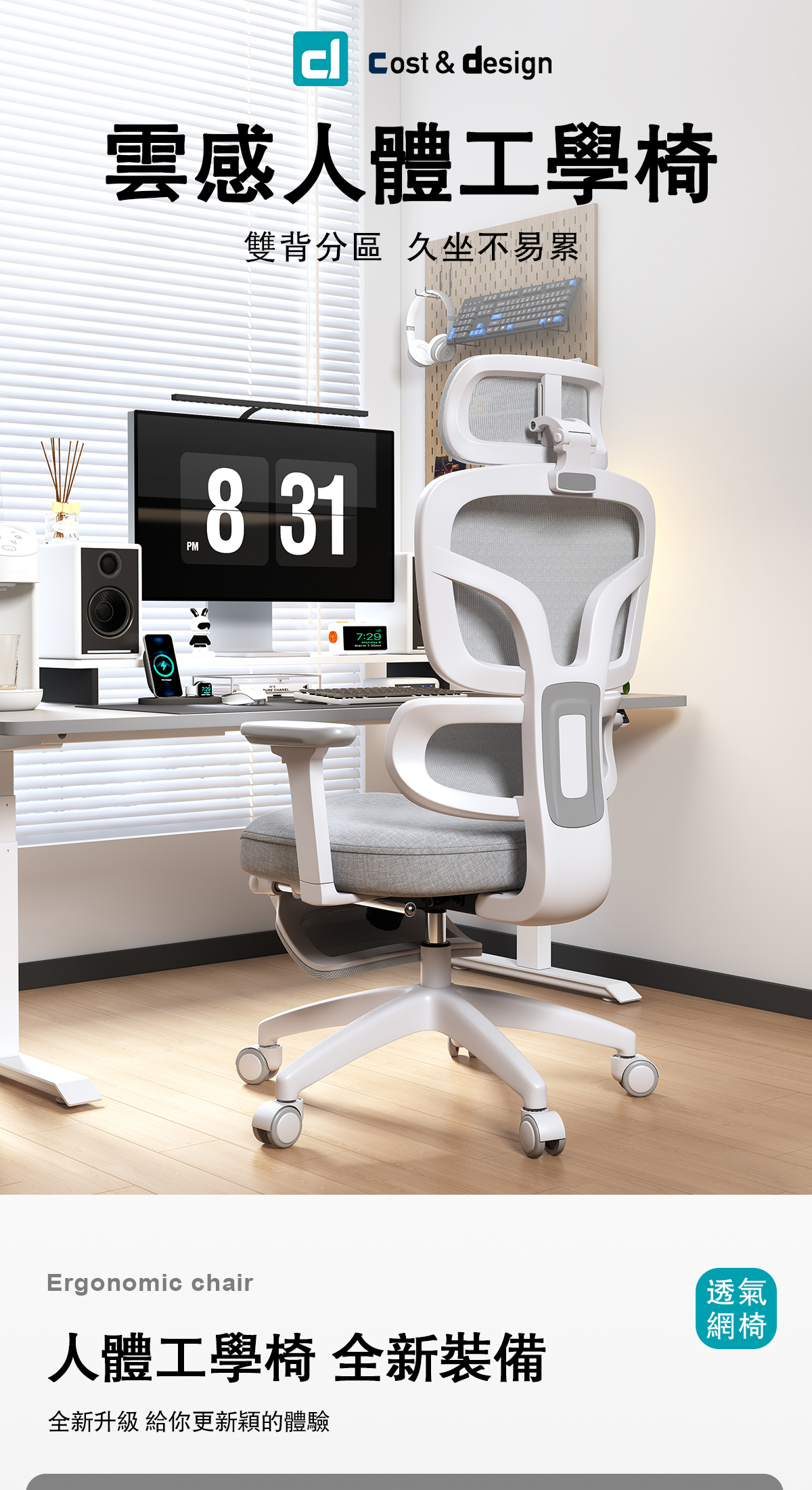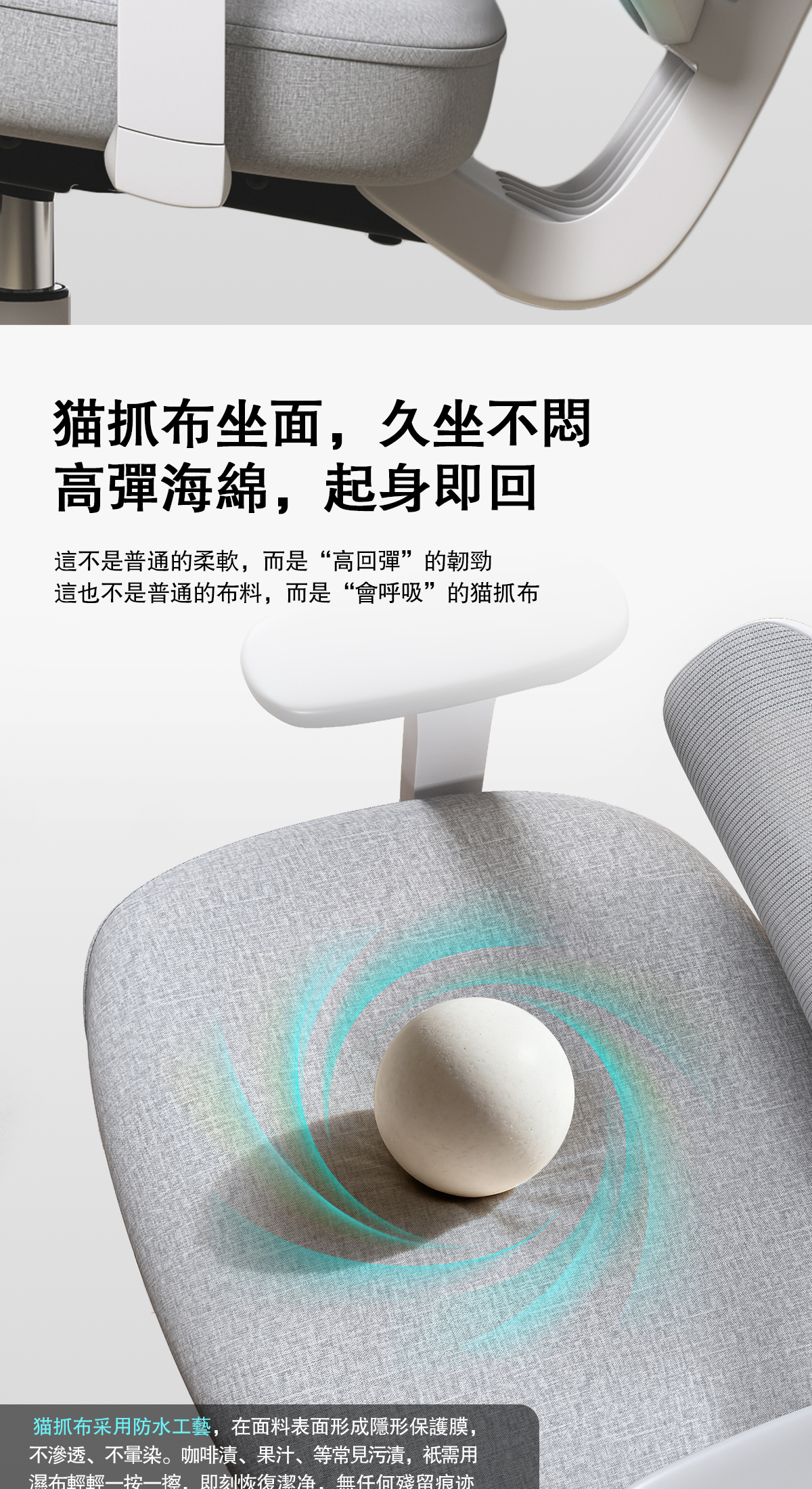 -3D調節頭枕+3D多功能扶手,適應多種使用