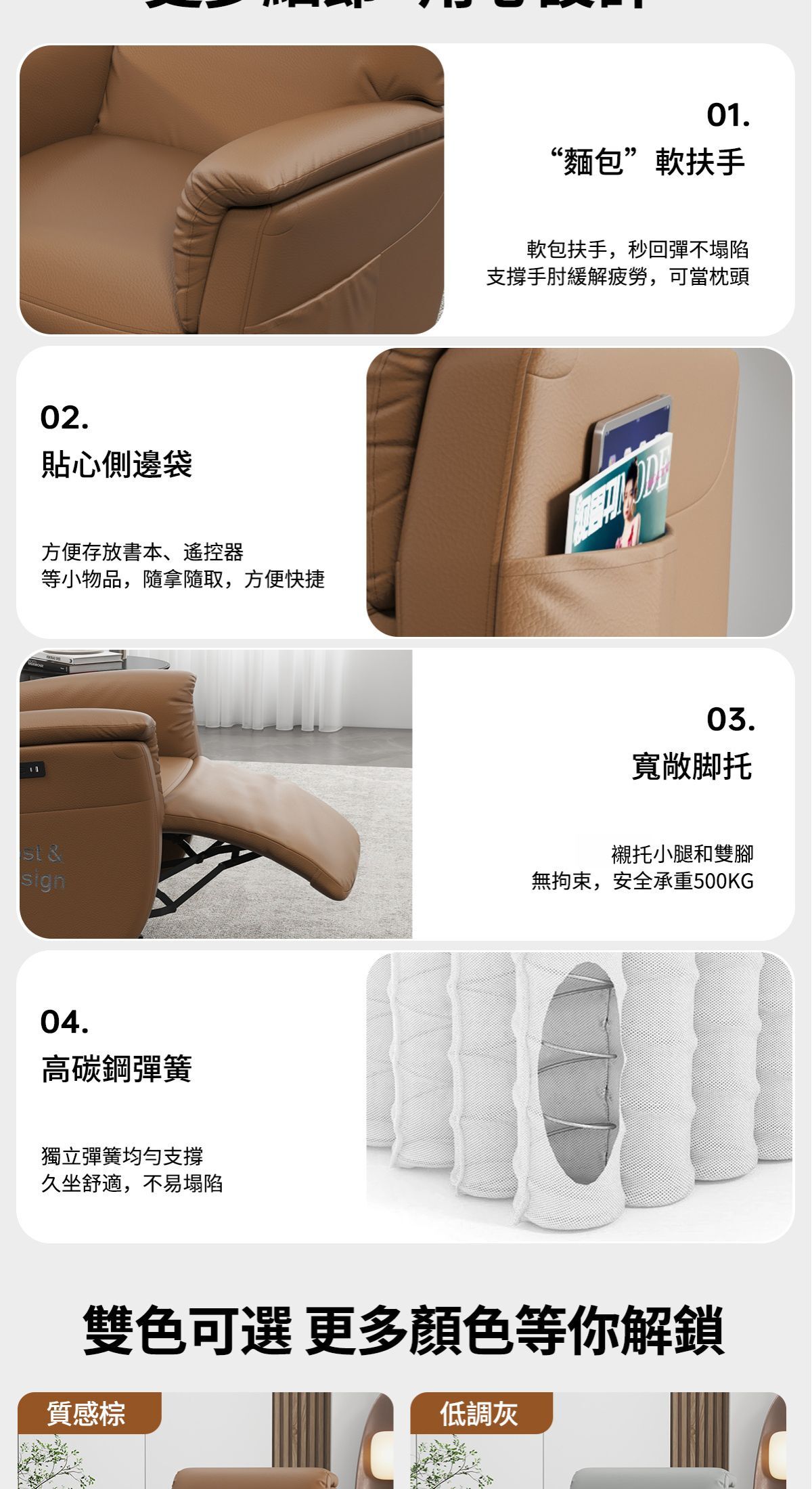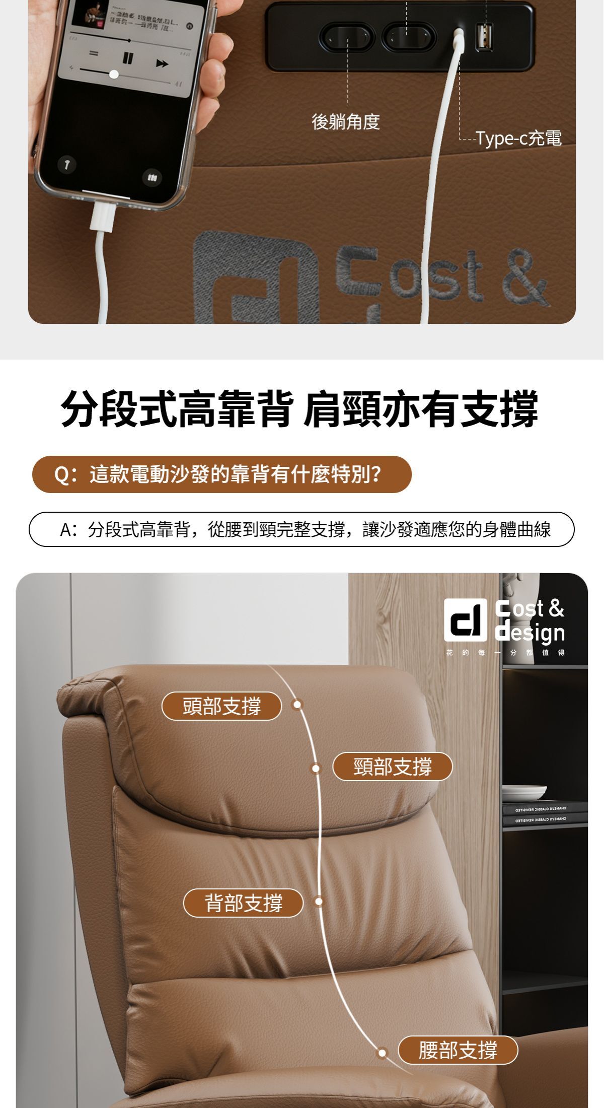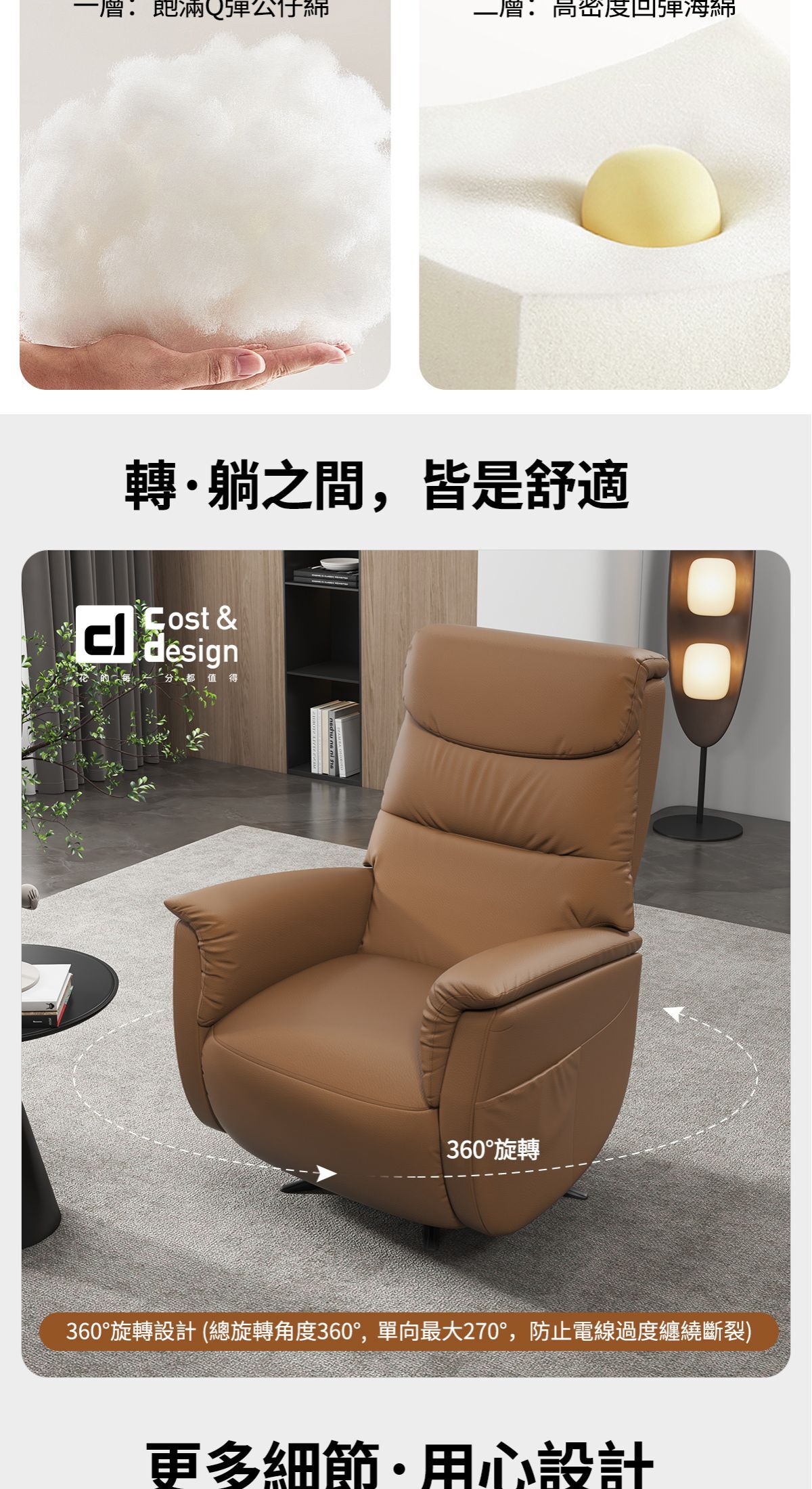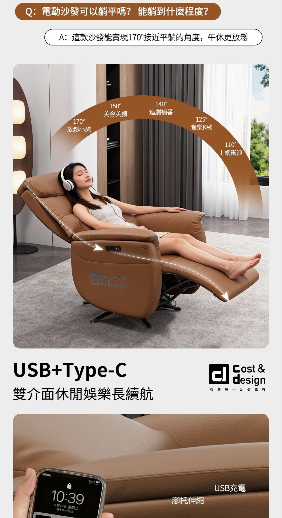 ※雙電機,獨立控制椅背或腳拖