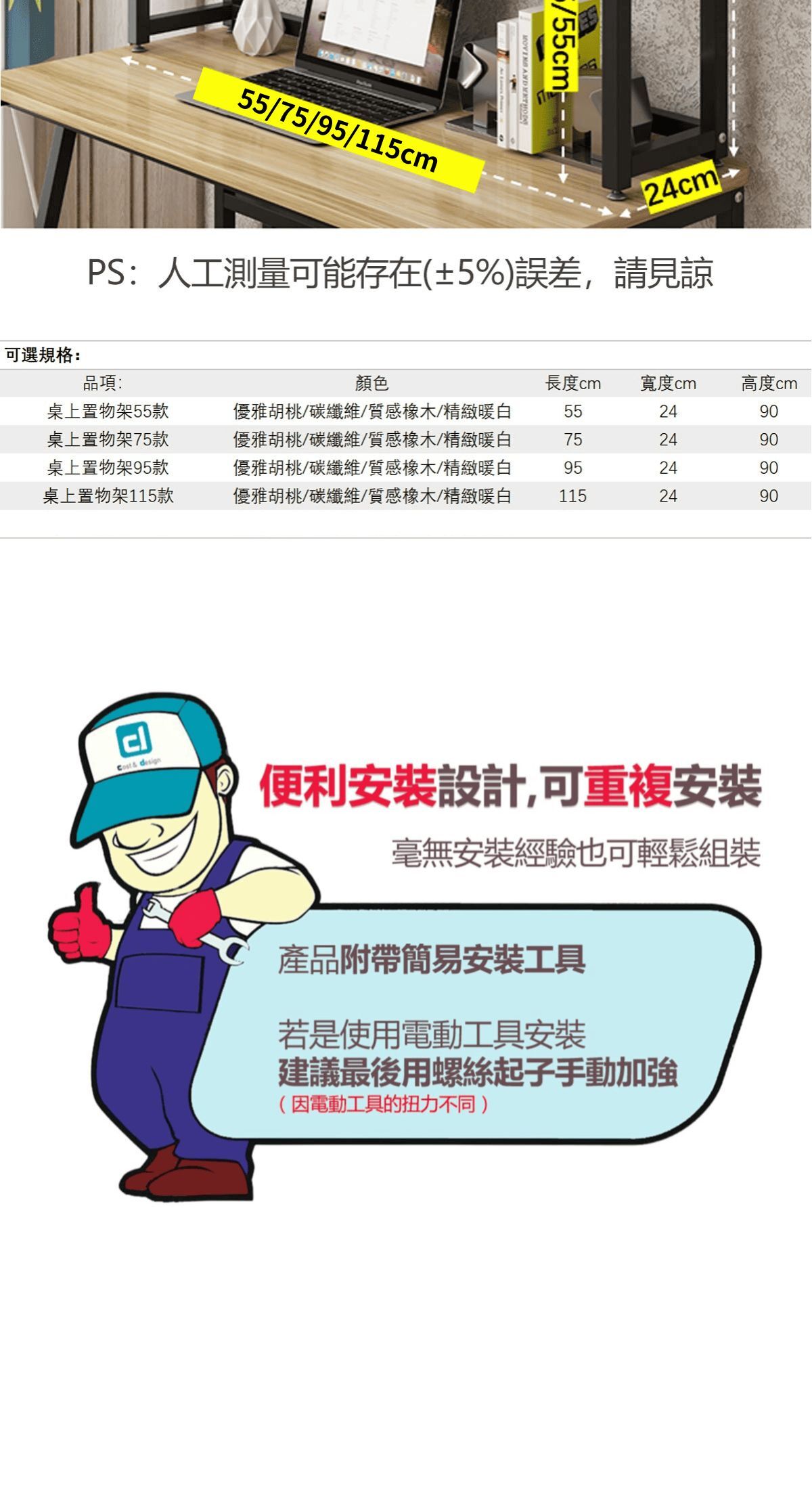 桌上置物架可選尺寸: