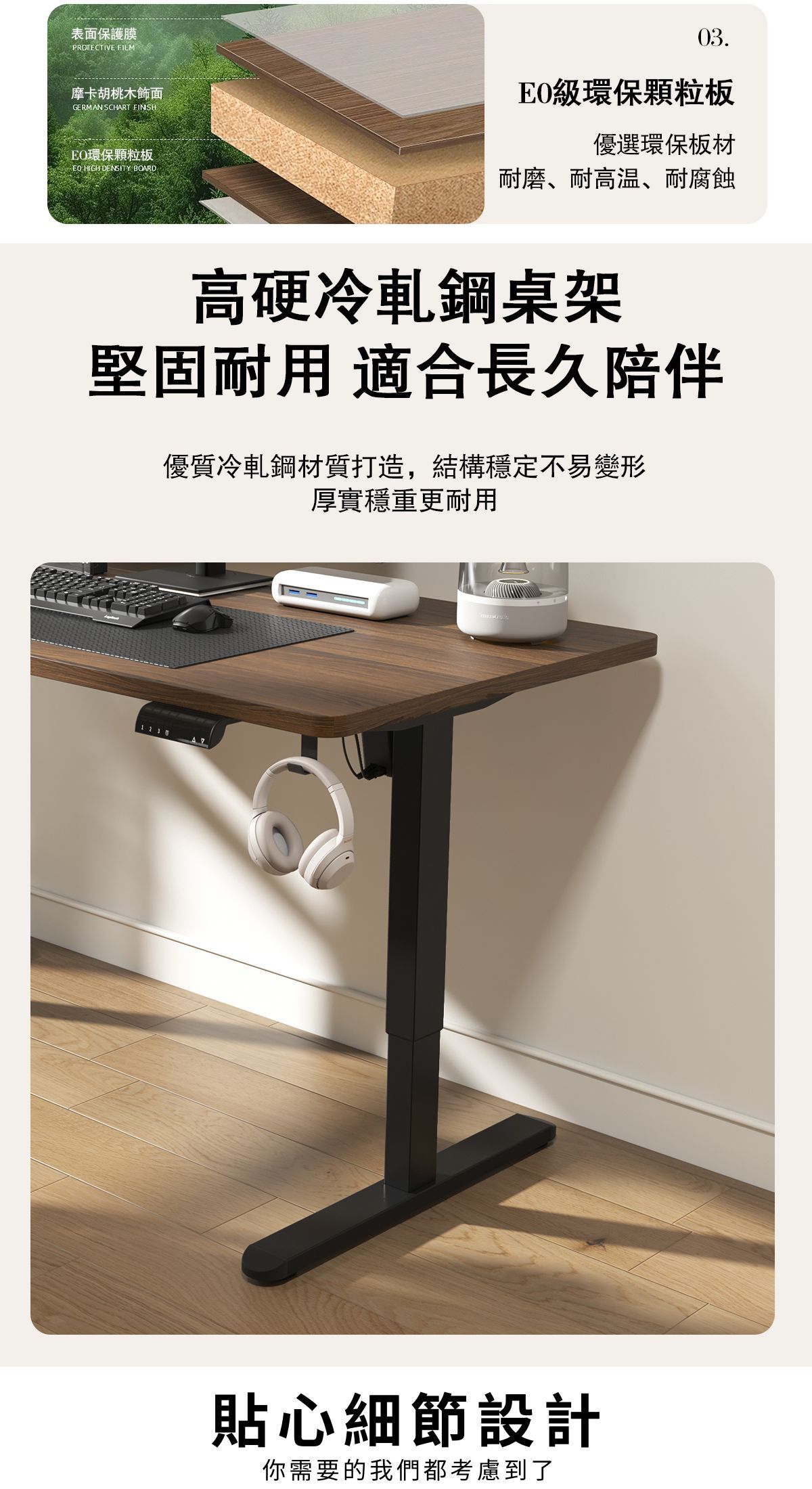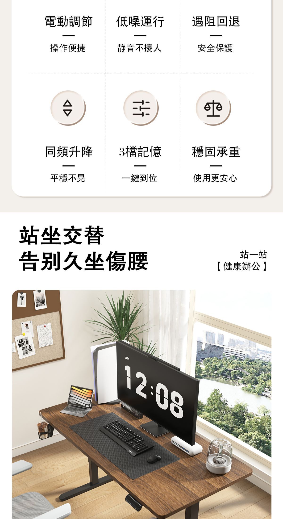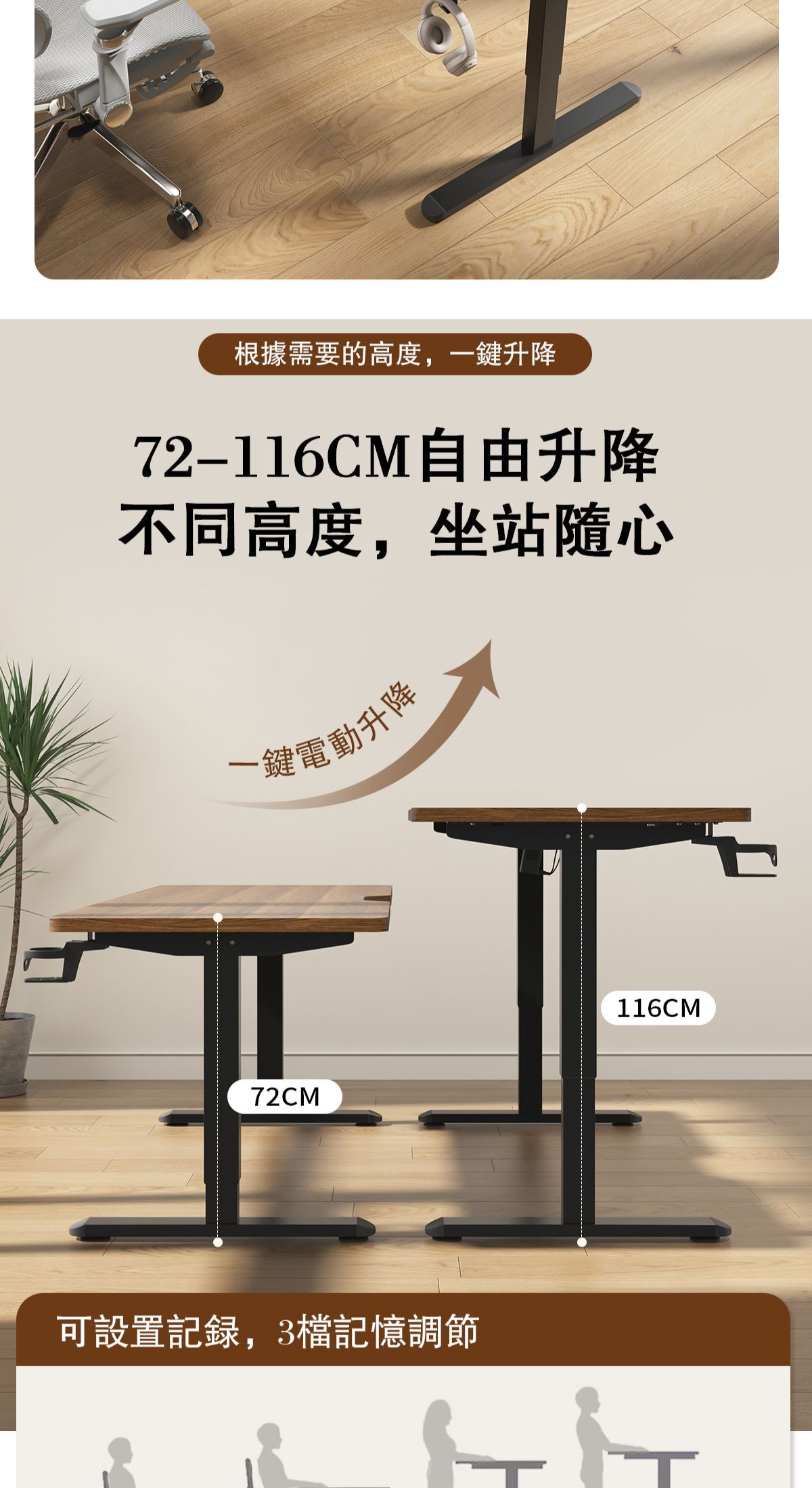 【桌面高度可調整,三檔記憶調節】