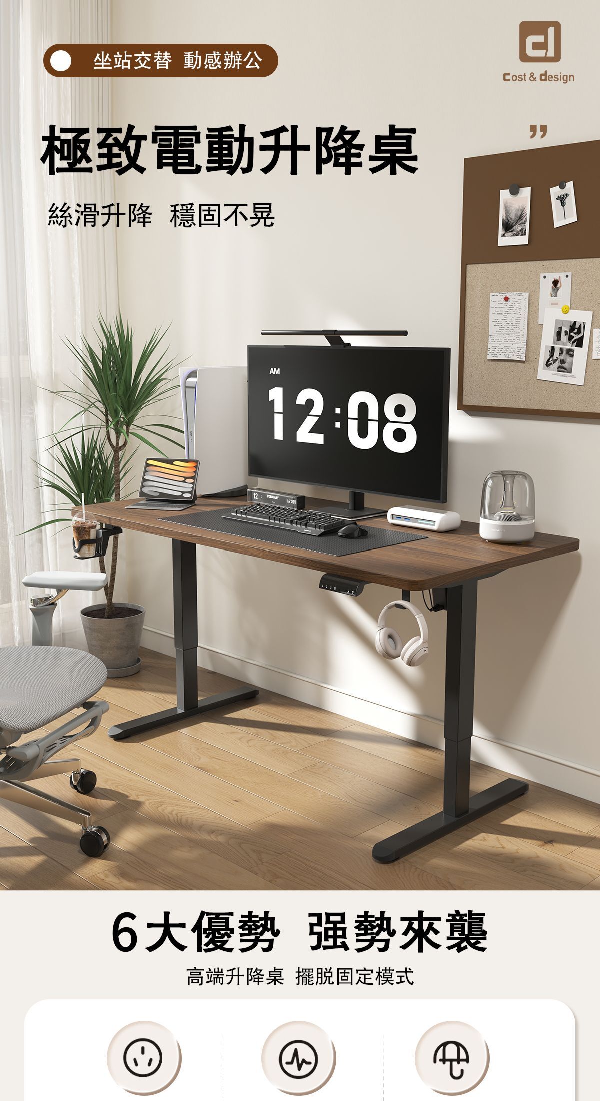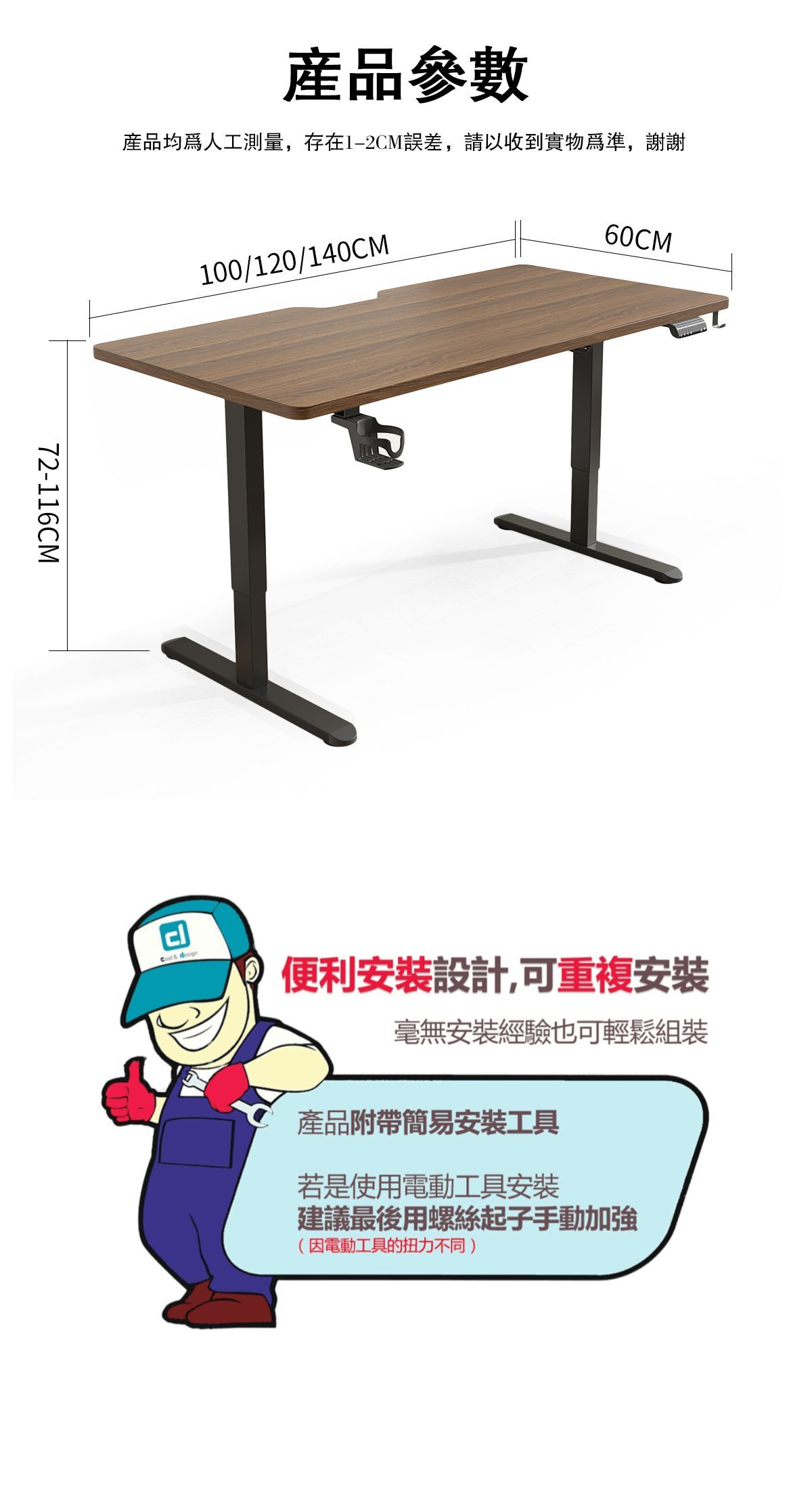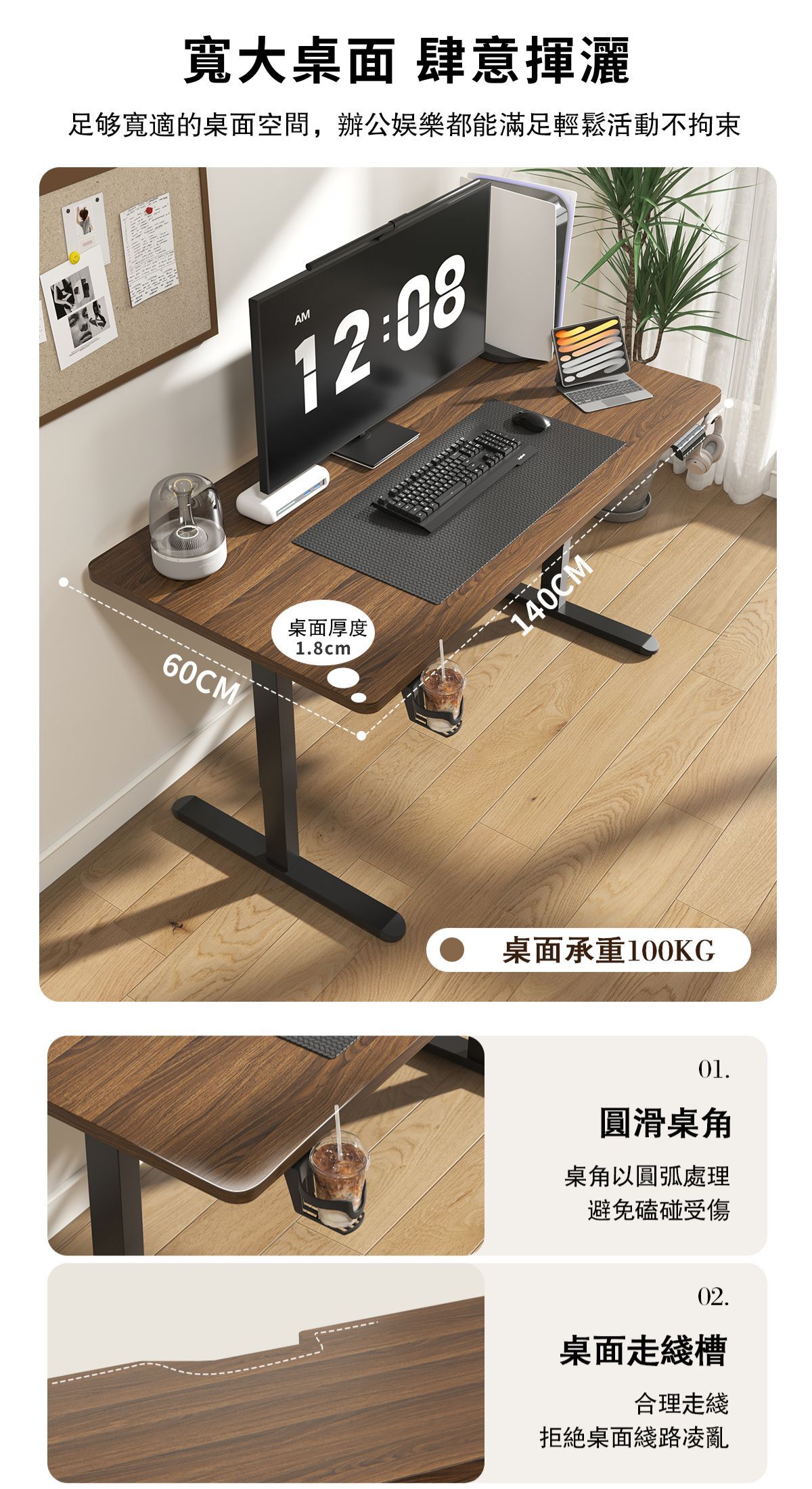 【桌面高度可調整,三檔記憶調節】