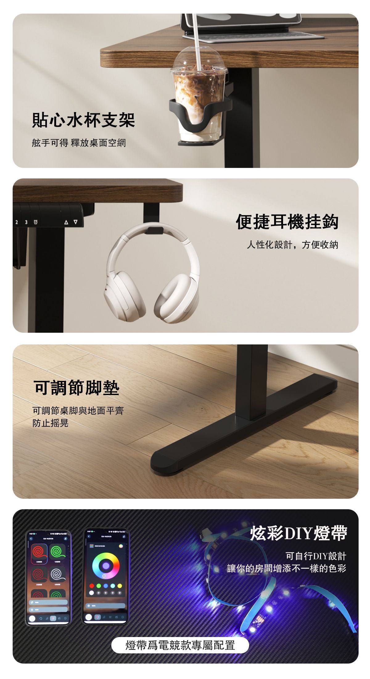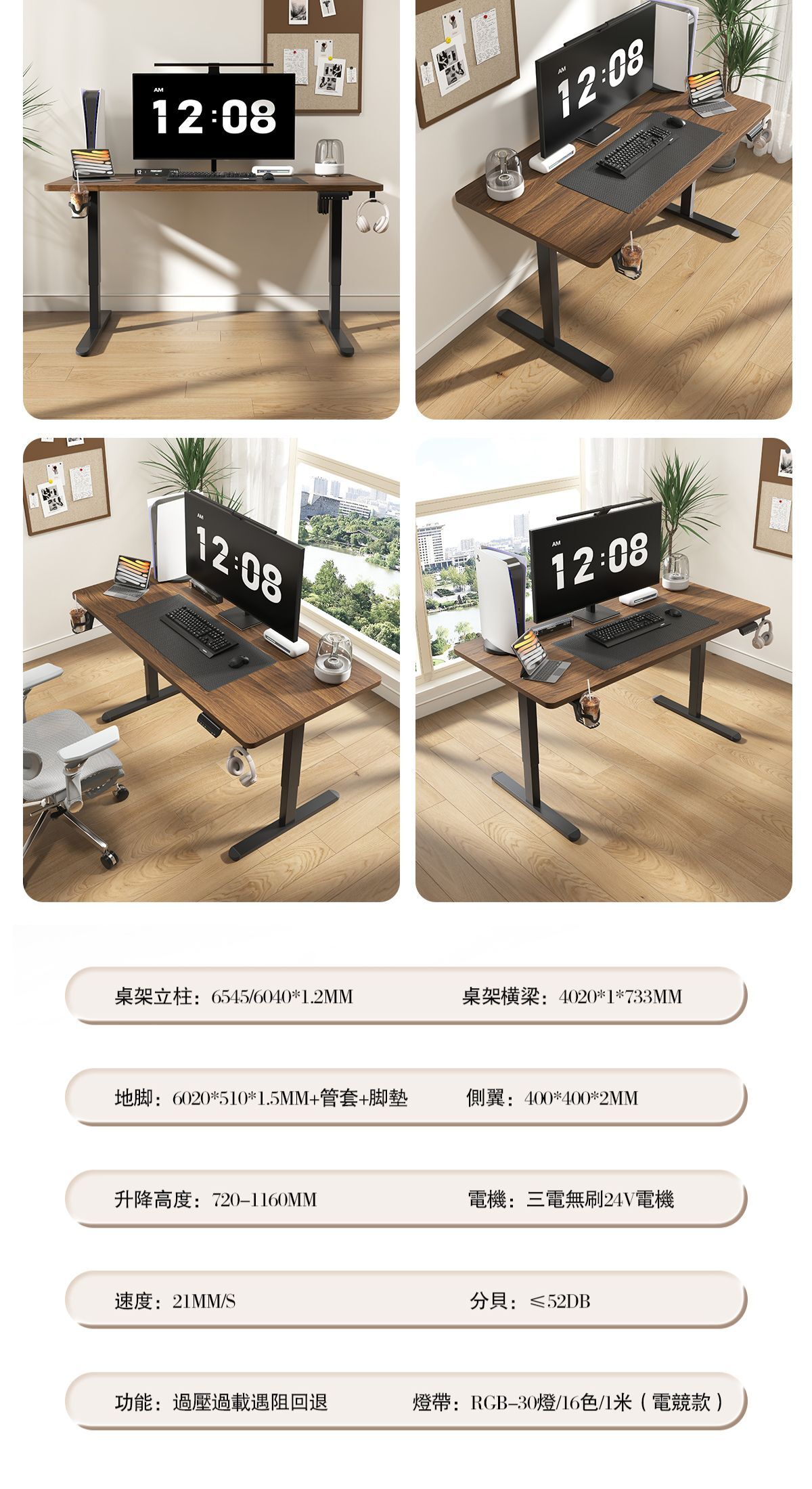 極致電動升降桌 碳纖維桌面兩色可選(升級附贈RGB氛圍燈) 木紋桌面兩色可選(無附贈RGB鎧甲燈)