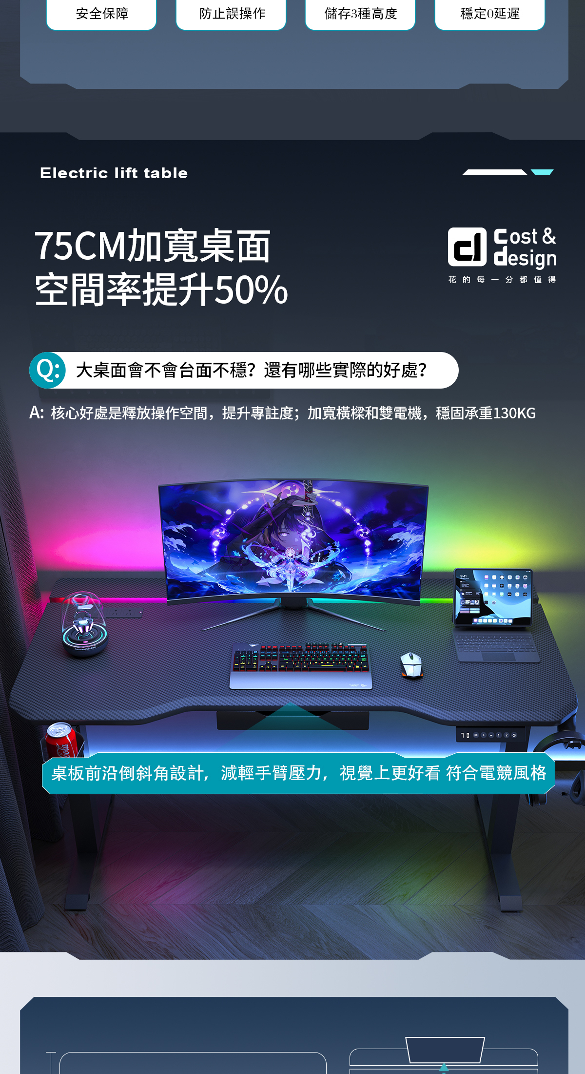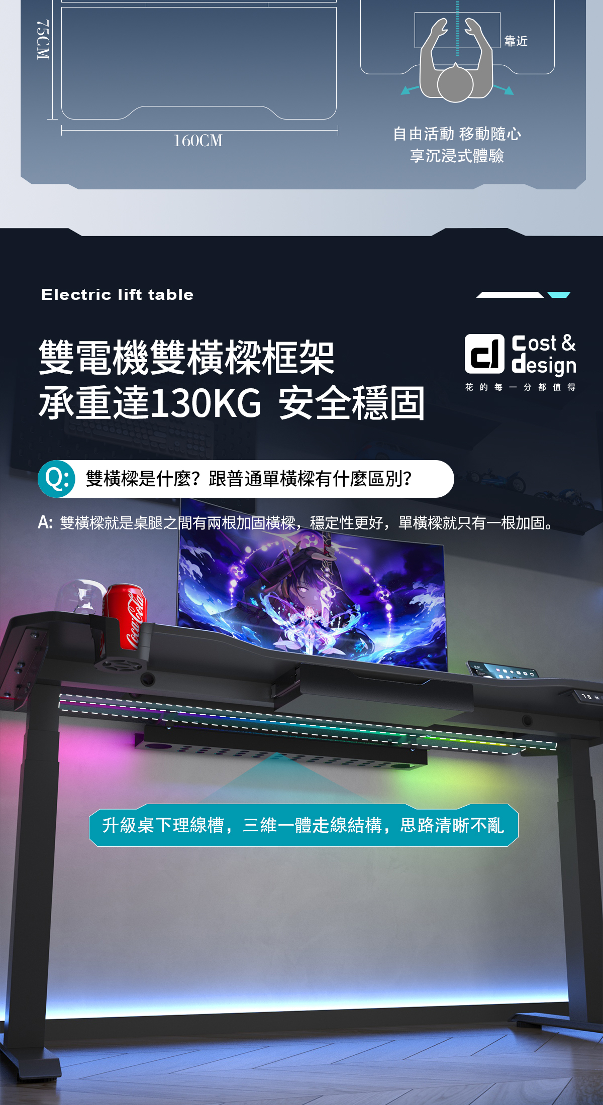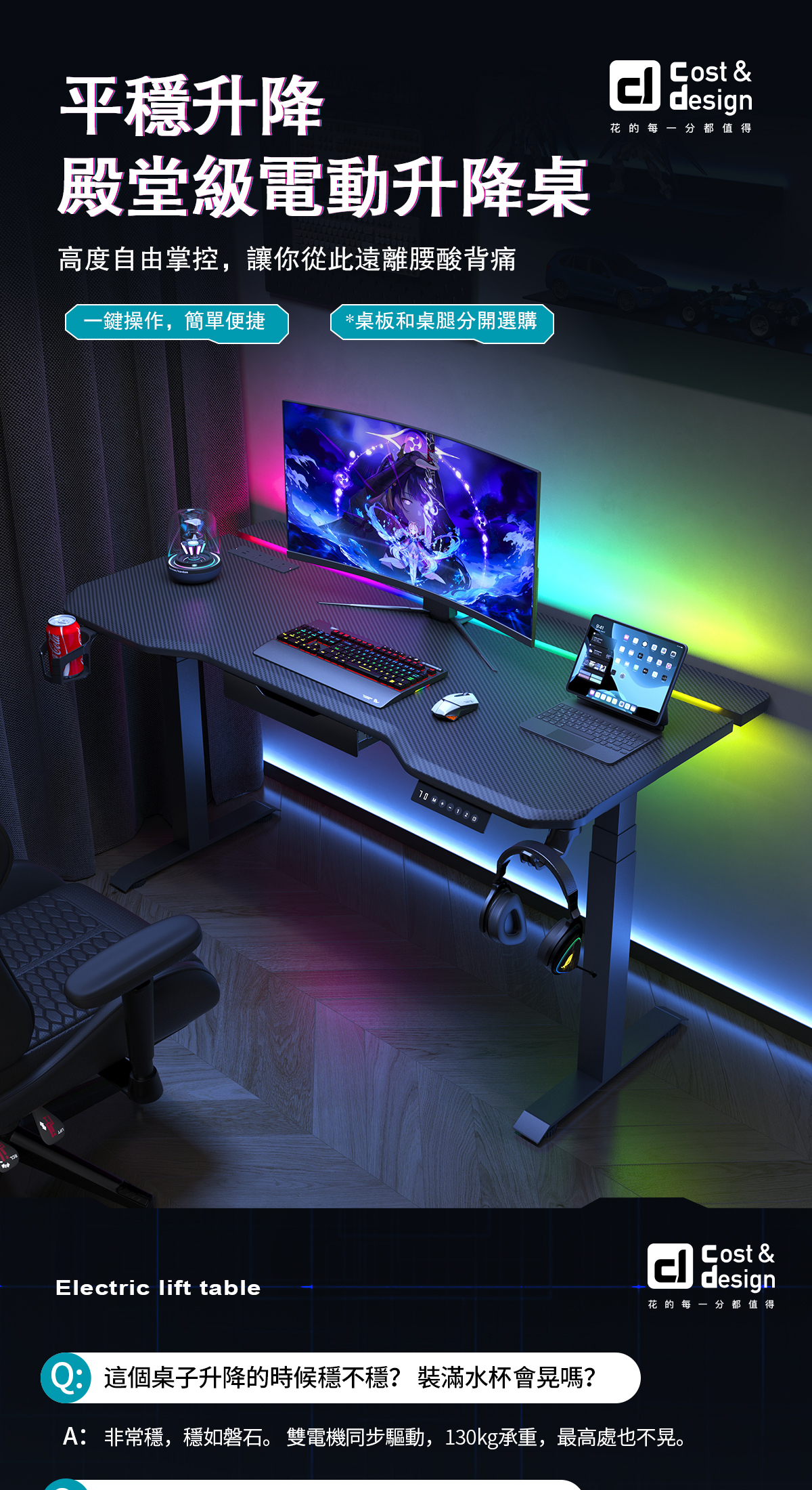 【桌板加寬75cm+碳纖維款升級附贈RGB氛圍燈】