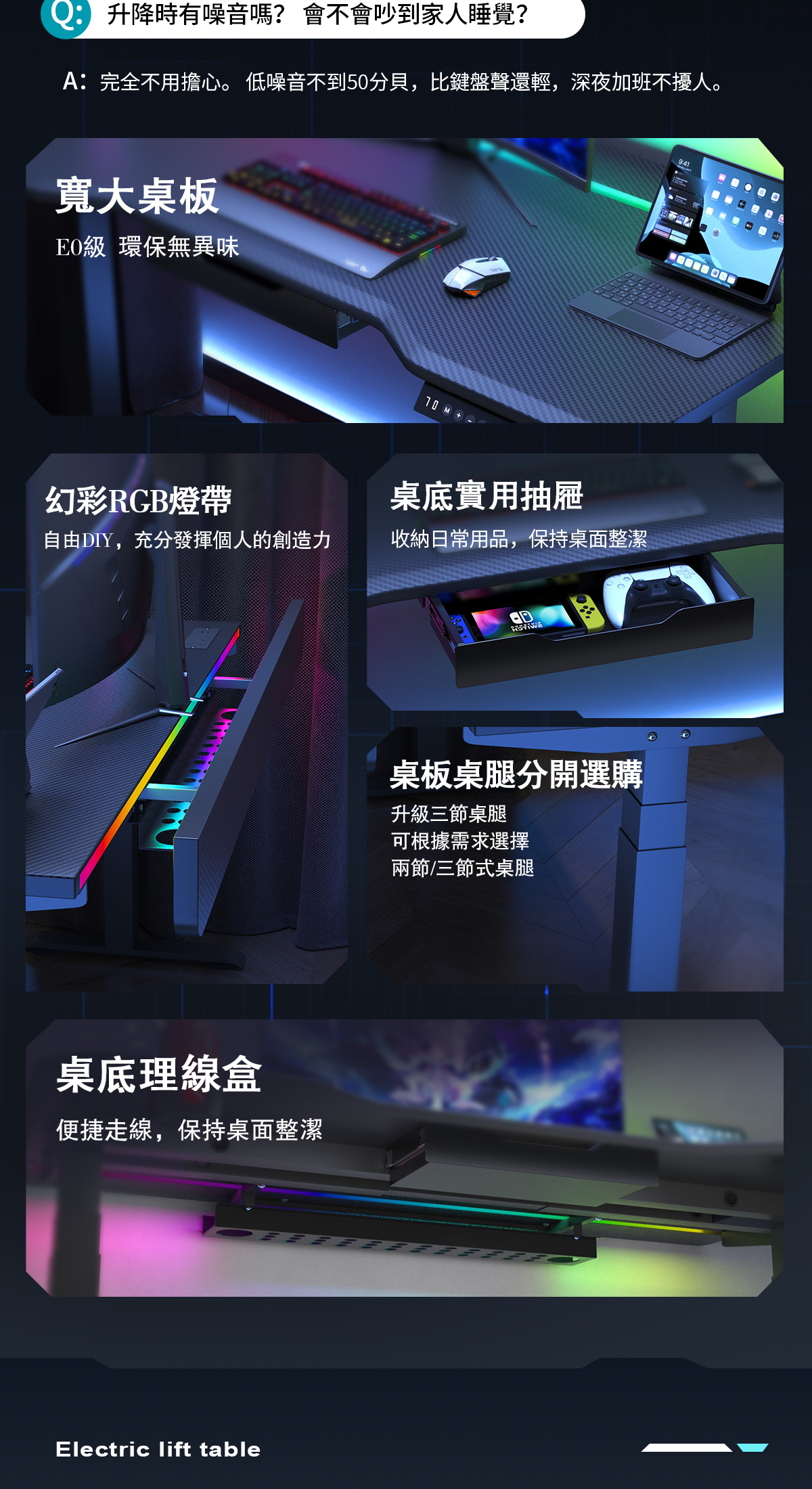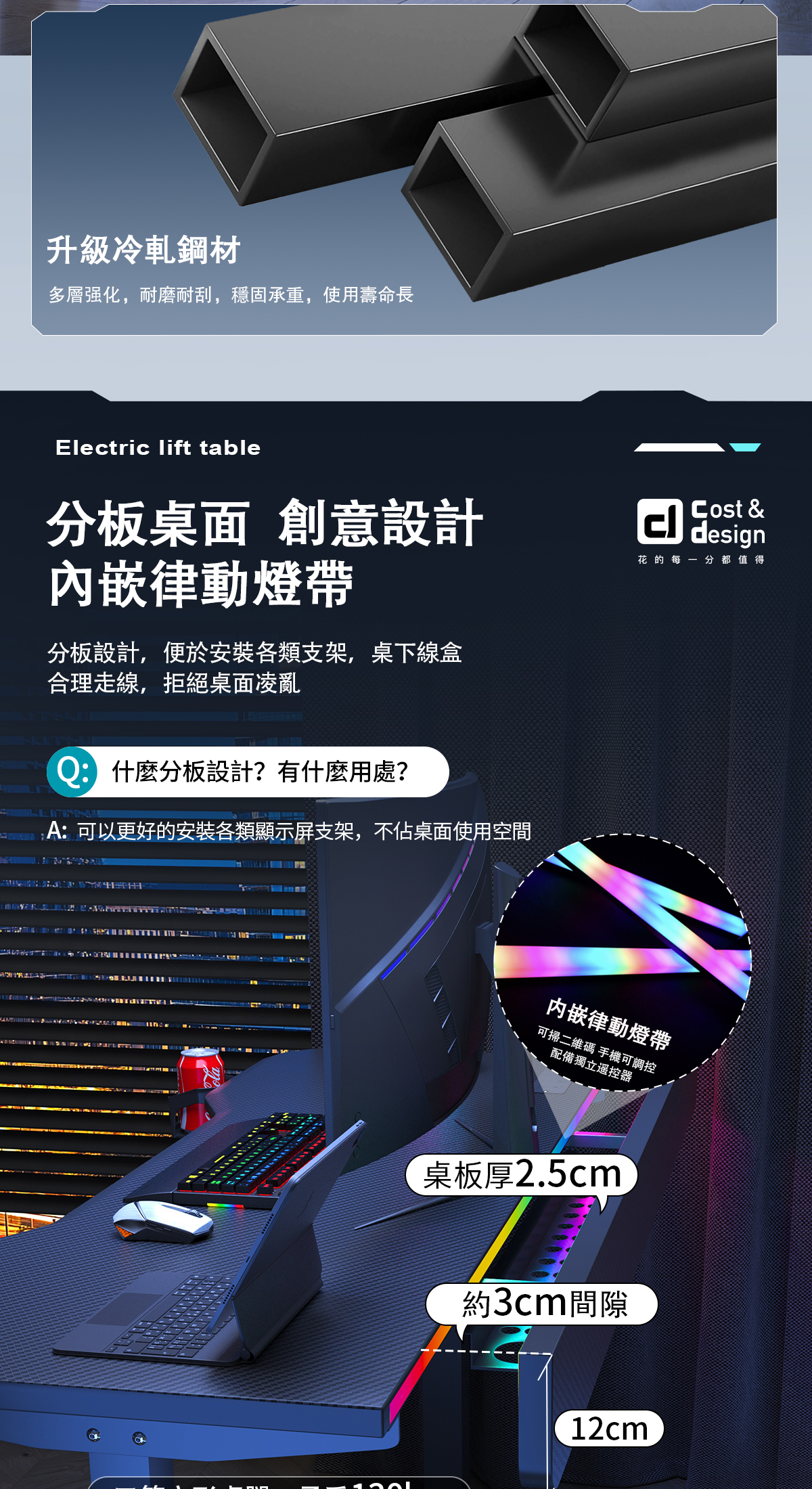 殿堂級電動升降桌桌板 雙色可選 分桌設計收納更全面