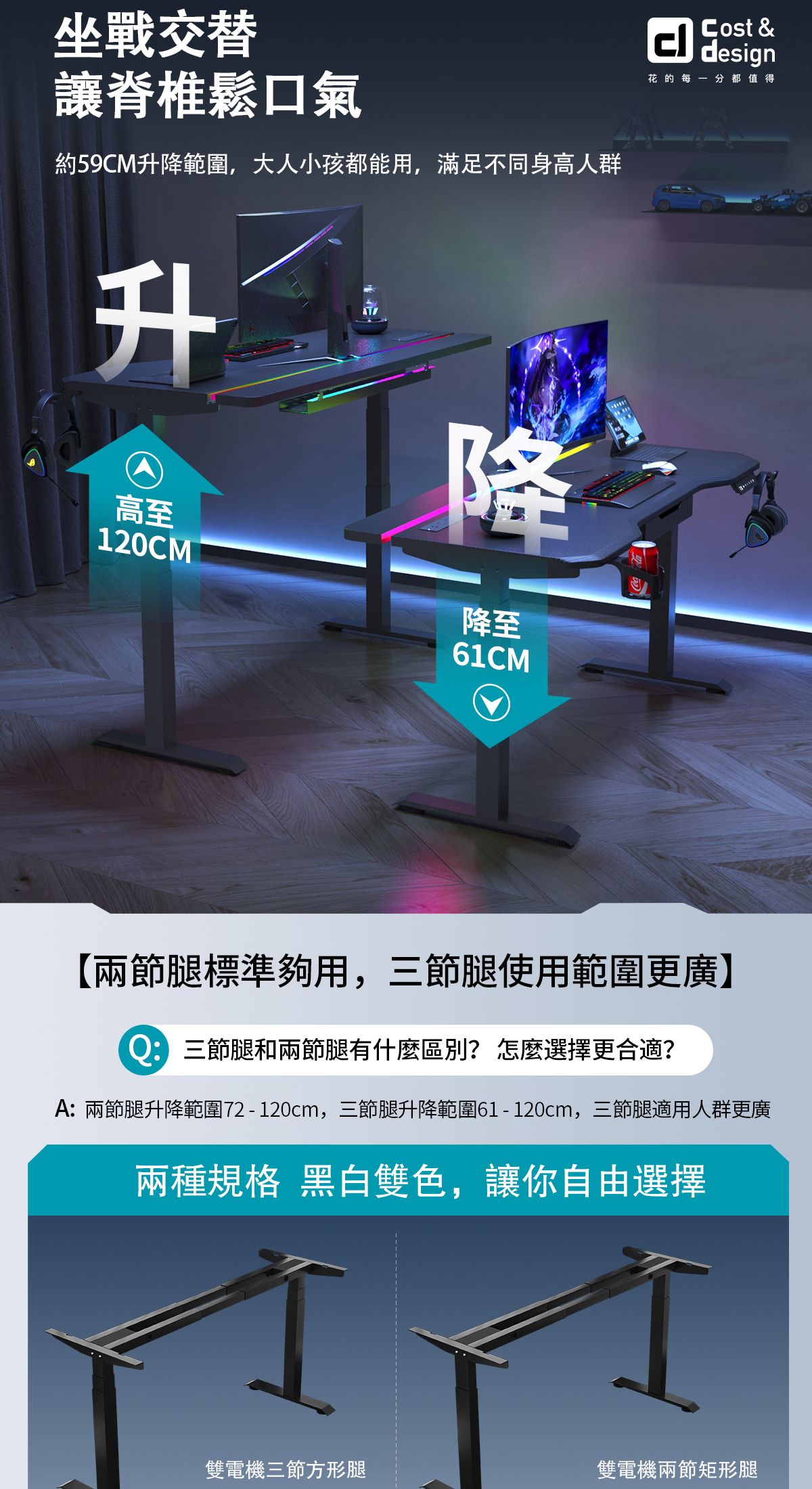 【電動升降雙電機/兩節桌腿&三節桌腿】