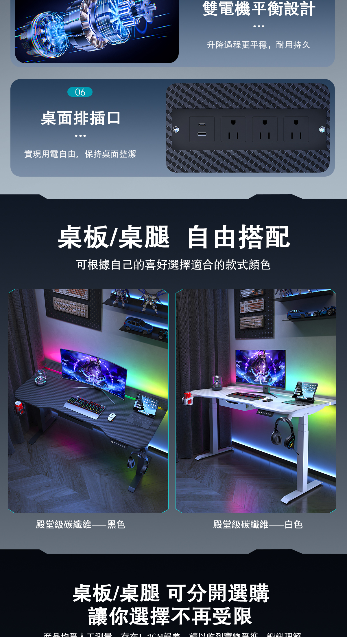 碳纖黑/白(升級附贈RGB氛圍燈)電動升降桌板尺寸:※只有桌板