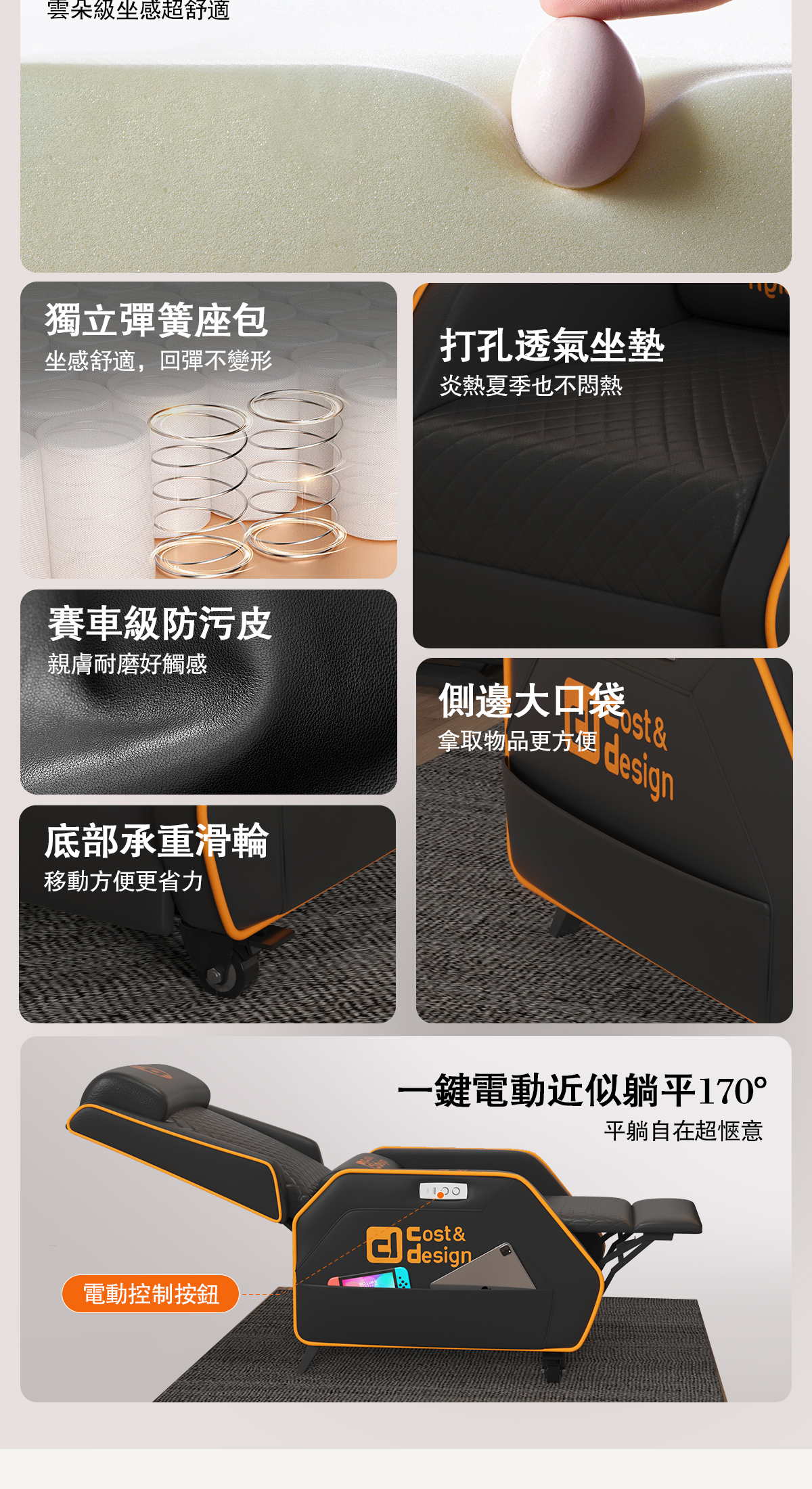 ※一鍵平躺,智能操作(可調整110°-170°)