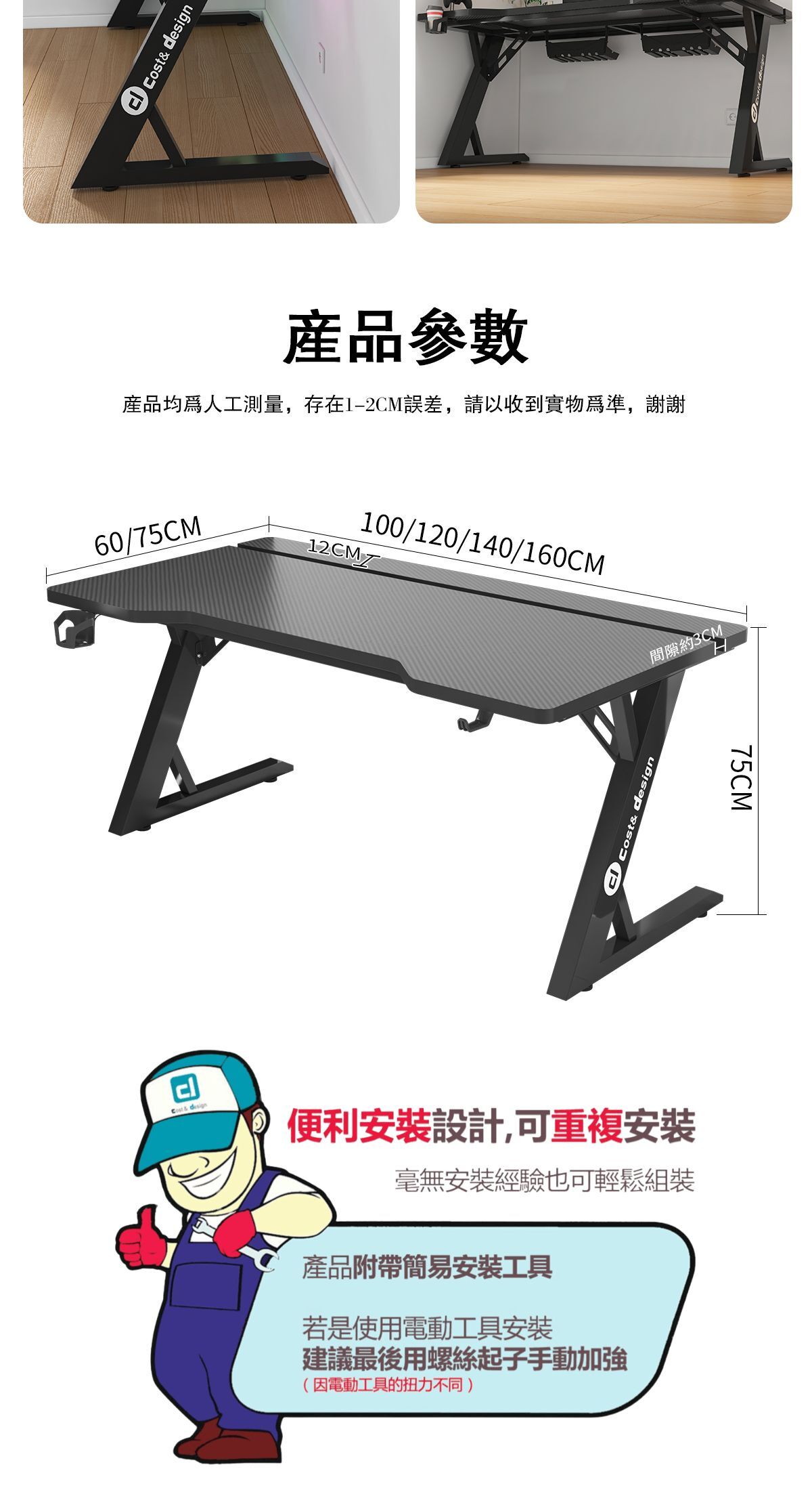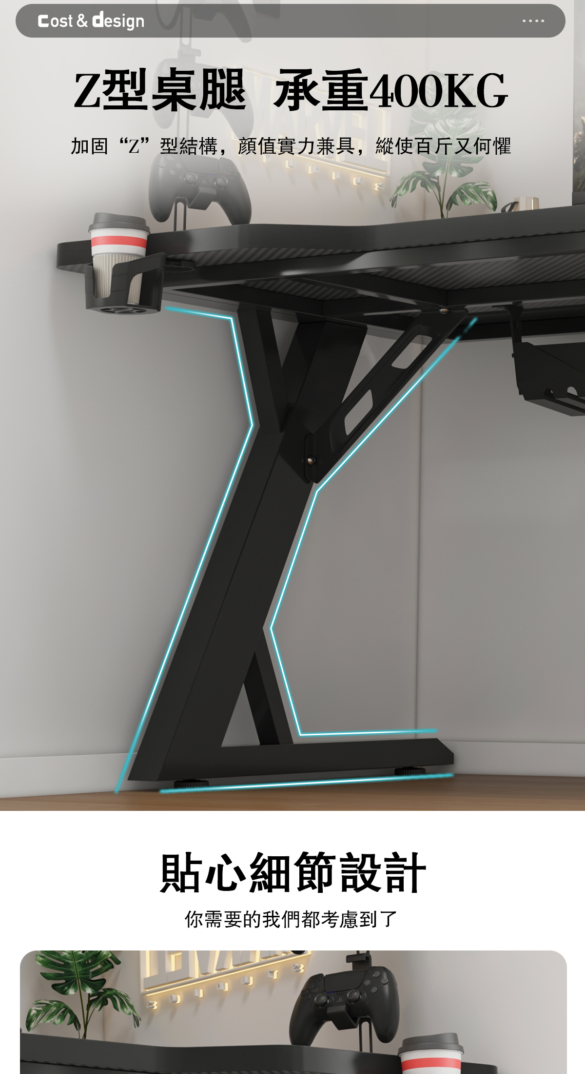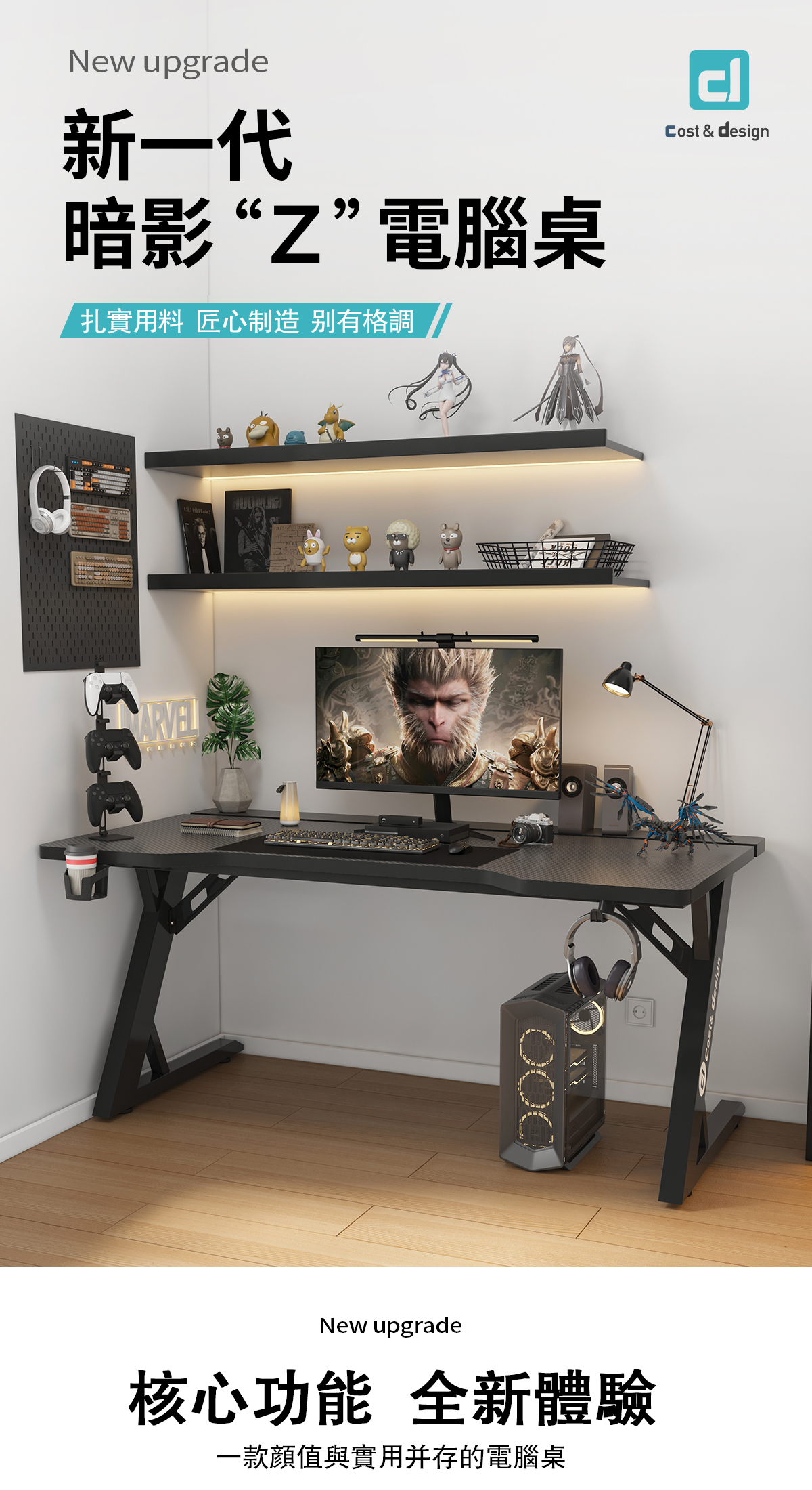 暗影Z電競桌 Z型桌腿設計 特選板材 桌板厚度2.5cm