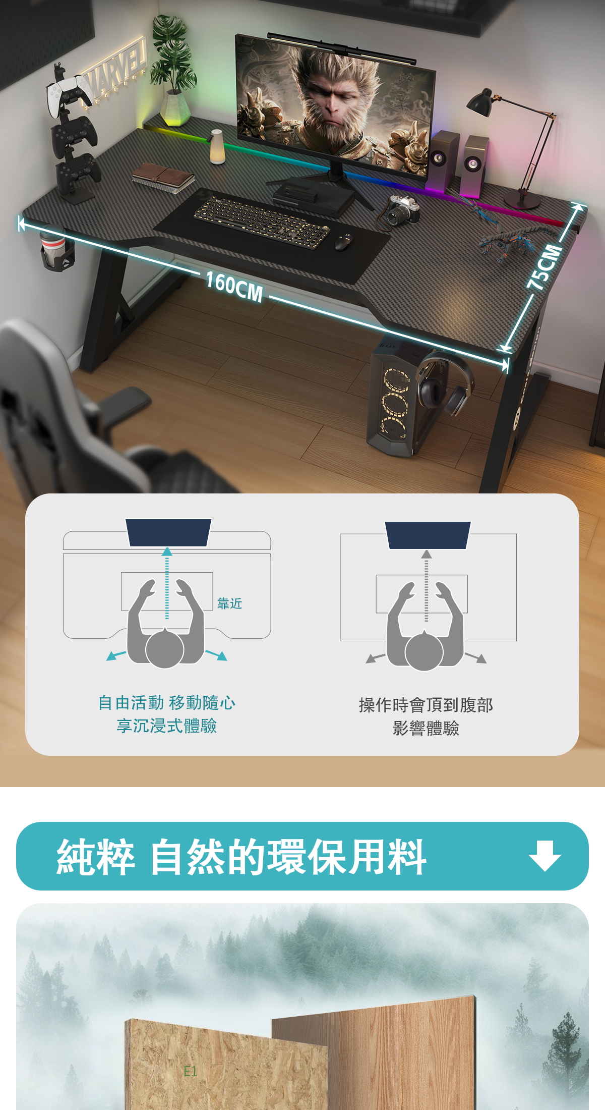 暗影Z電競桌-75款尺寸: