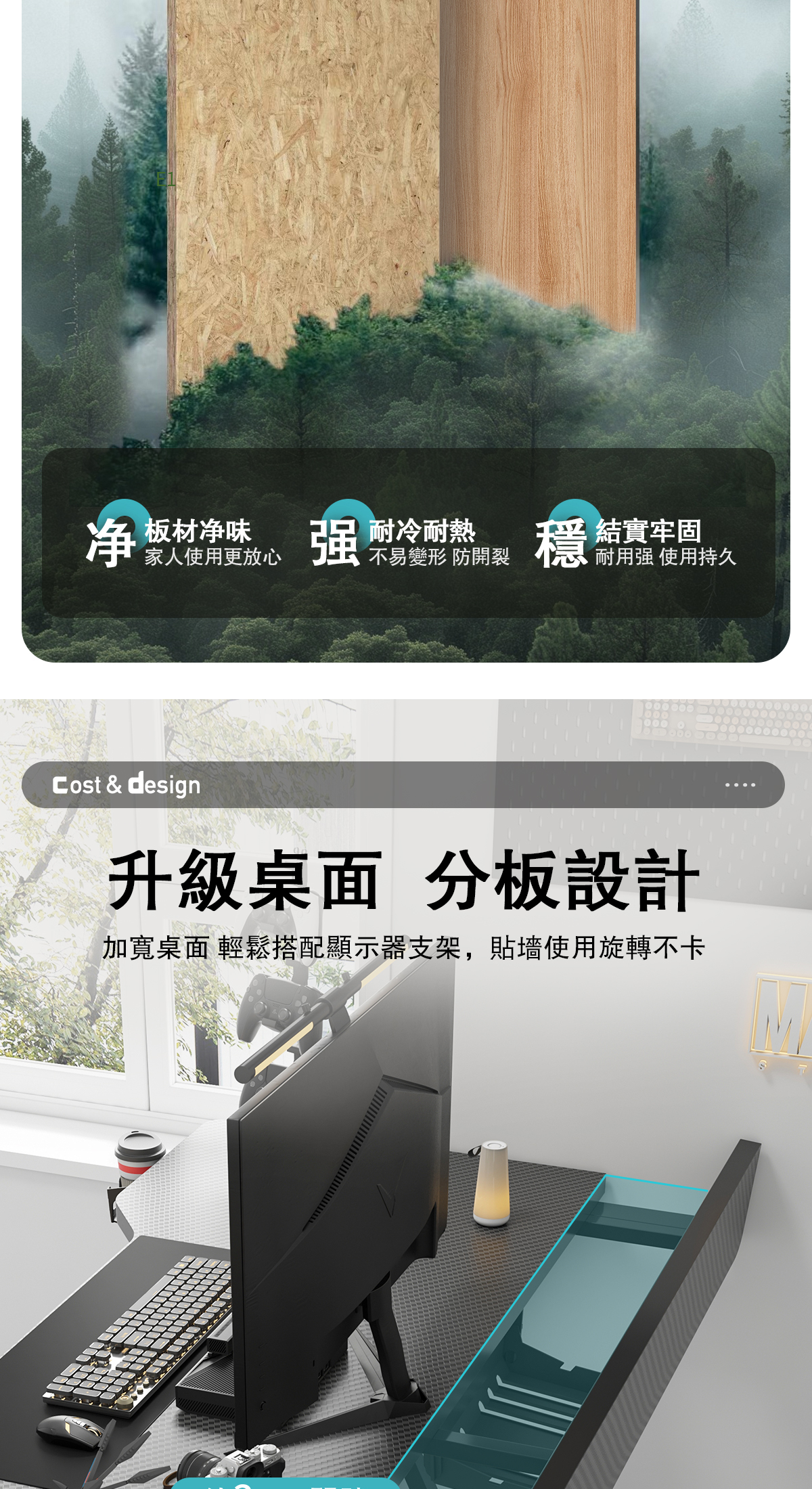【桌面厚度升級2.5cm,分板設計使用更全面】