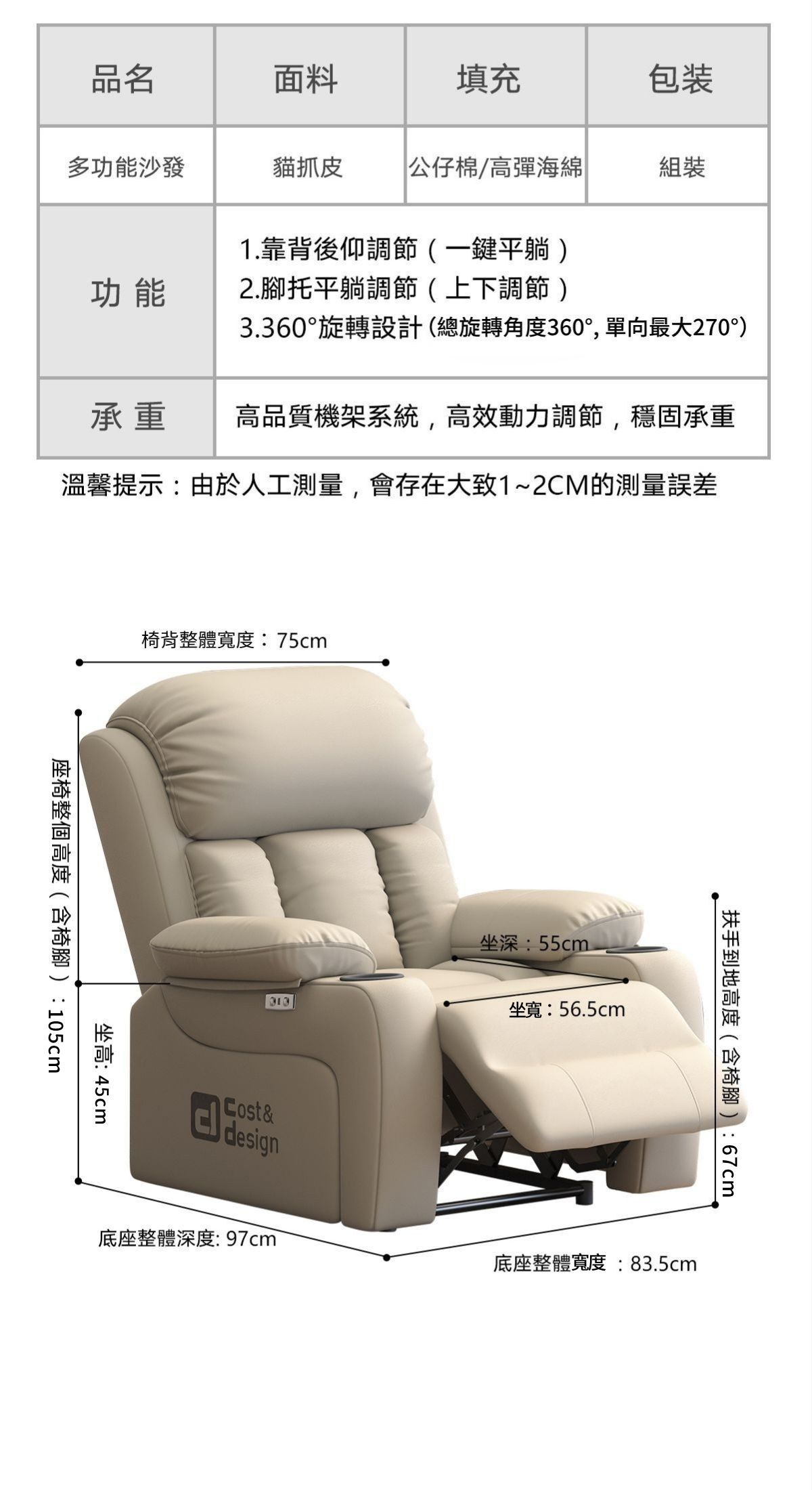 電動單人沙發360-2025年全新功能升級,自帶360度旋轉功能-